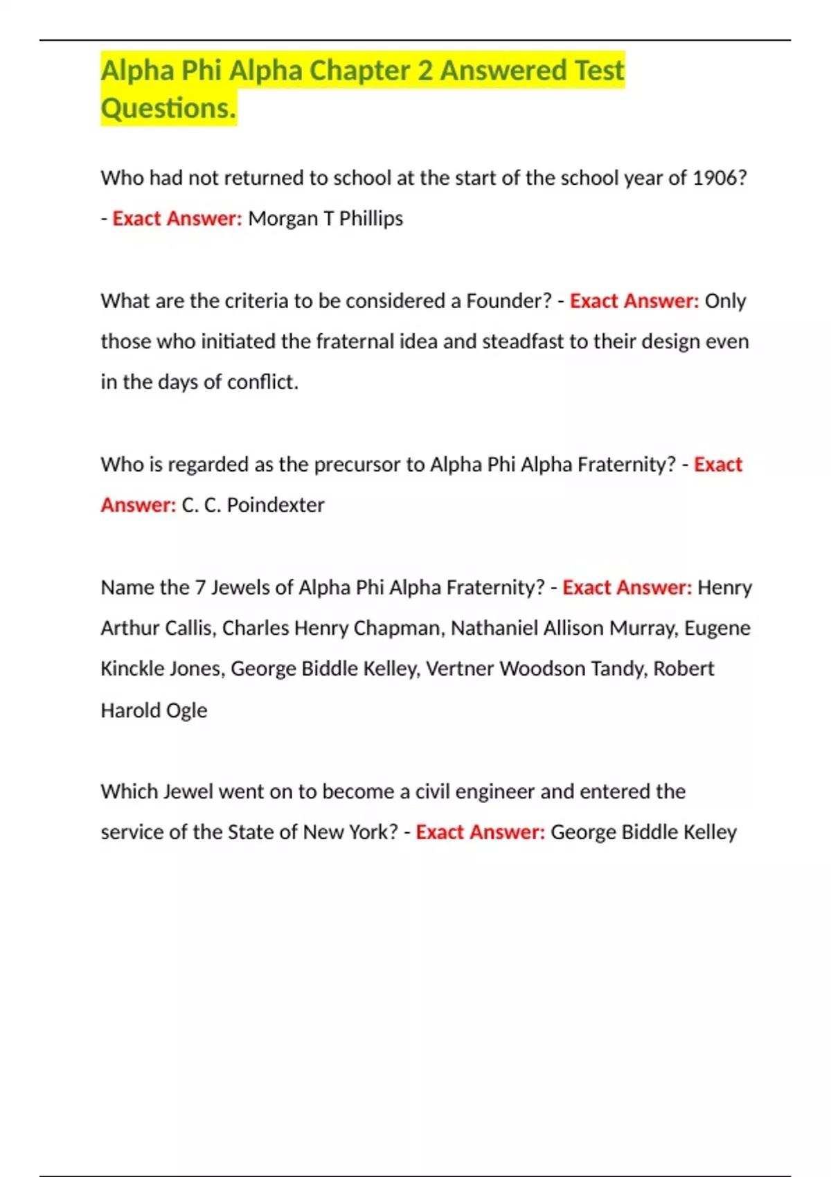 , Alpha Phi Alpha Chapter 2 Answered Test