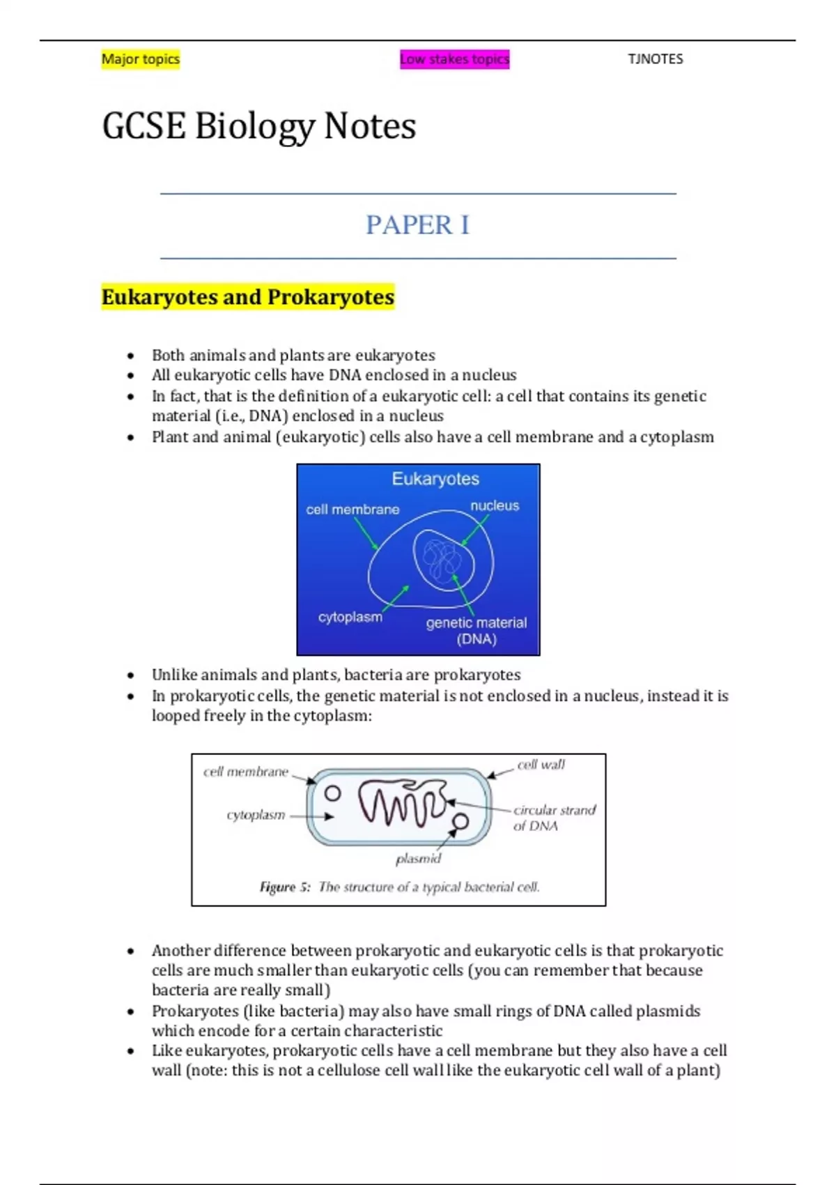 Summary Grade 9 GCSE Biology Triple Paper 1 notes