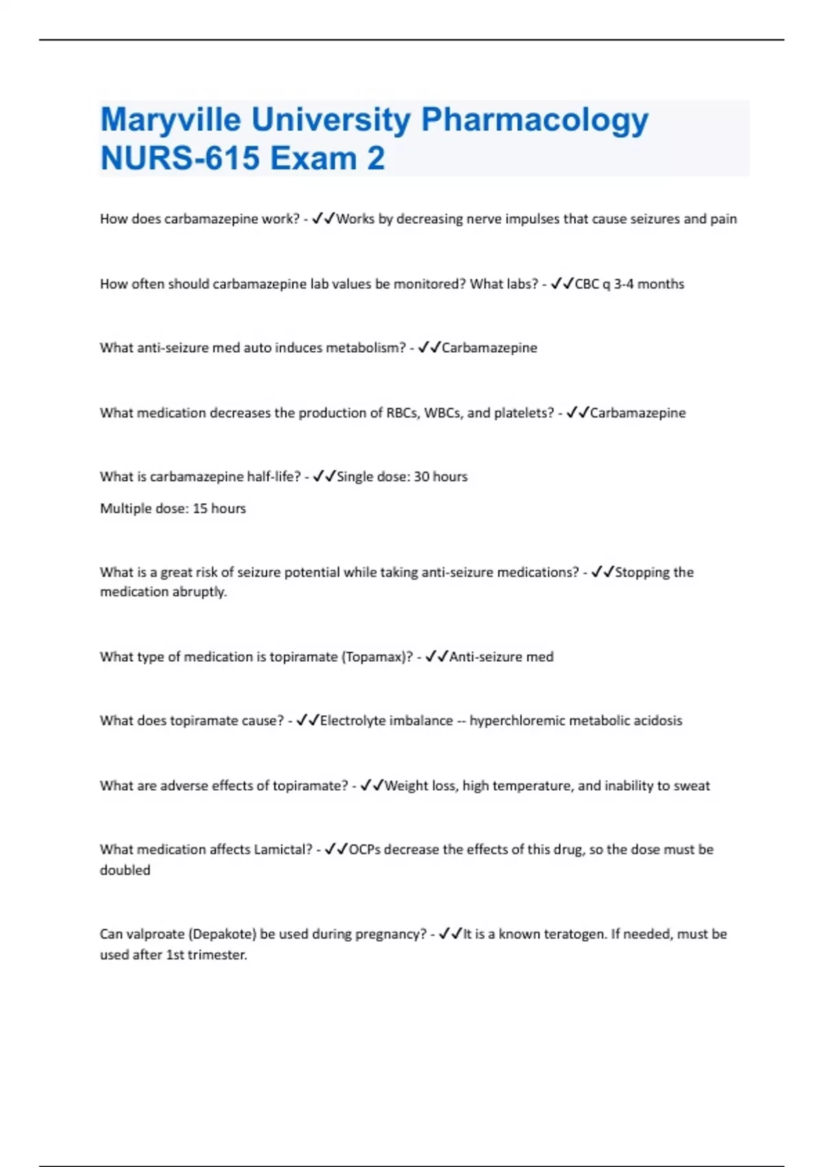 Maryville University Pharmacology NURS-615 Exam 2 exam with complete solution graded A+