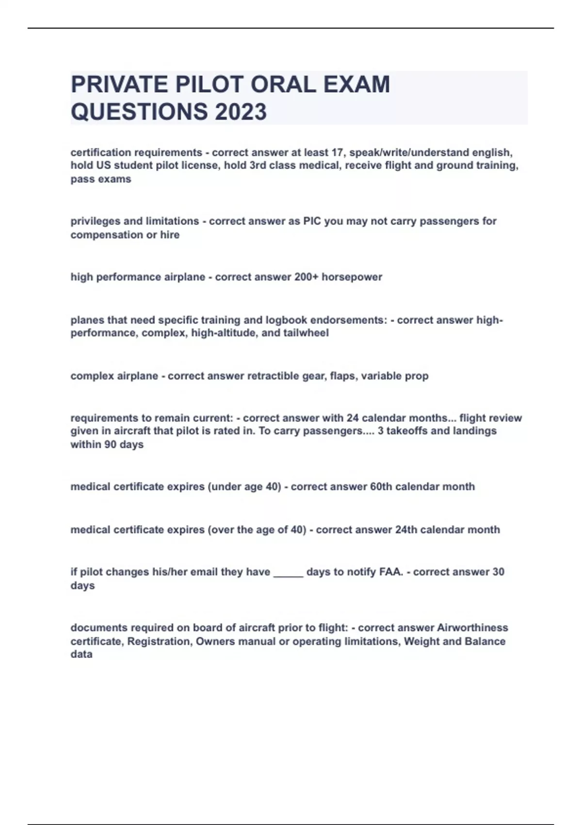 PRIVATE PILOT ORAL EXAM QUESTIONS 2023|UPDATED&VERIFIED|100% SOLVED|GUARANTEED SUCCESS