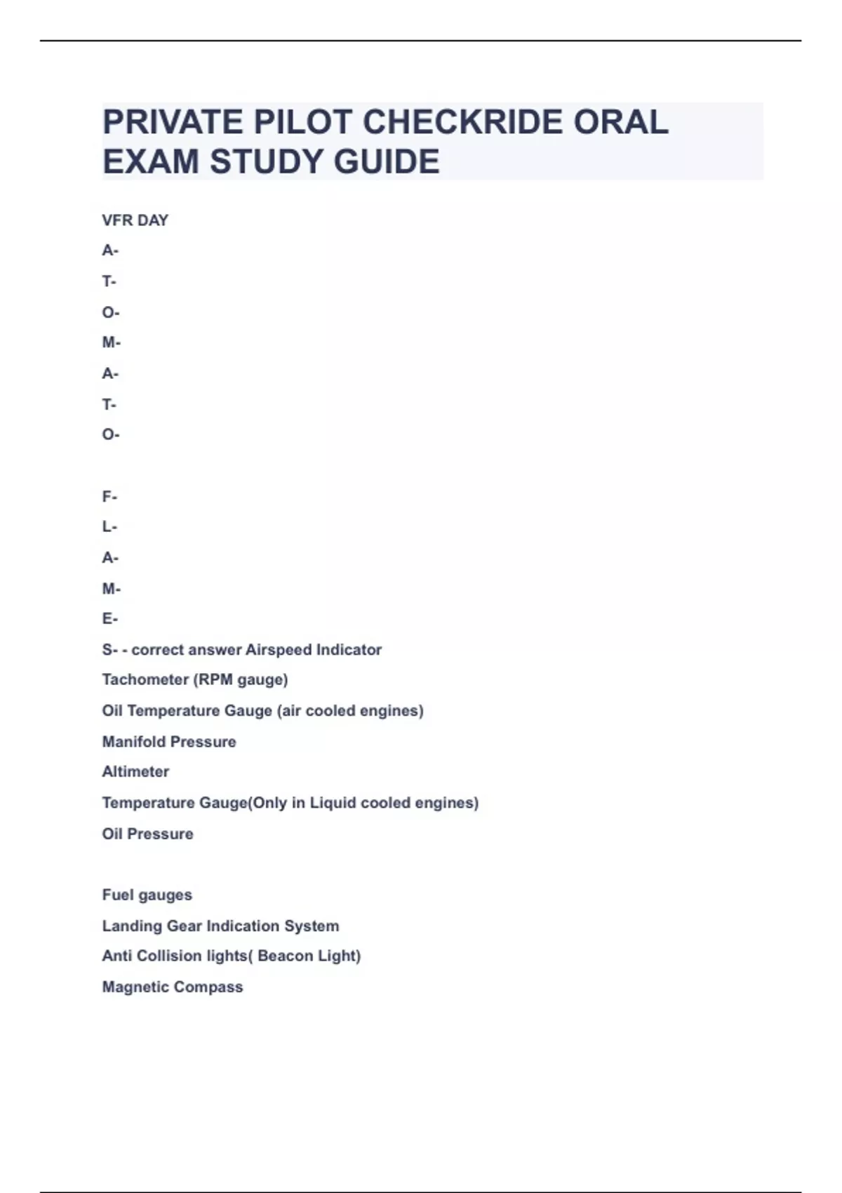PRIVATE PILOT CHECKRIDE ORAL EXAM STUDY GUIDE|UPDATED&VERIFIED|100% SOLVED|GUARANTEED SUCCESS