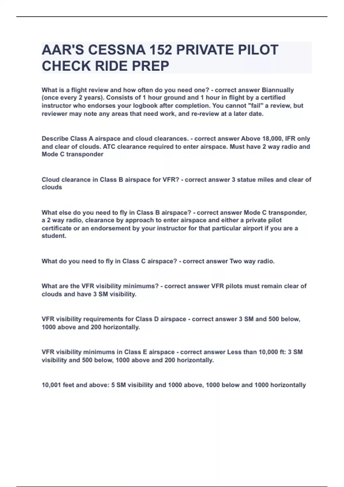 AAR'S CESSNA 152 PRIVATE PILOT CHECK RIDE PREP|UPDATED&VERIFIED|100% SOLVED|GUARANTEED SUCCESS