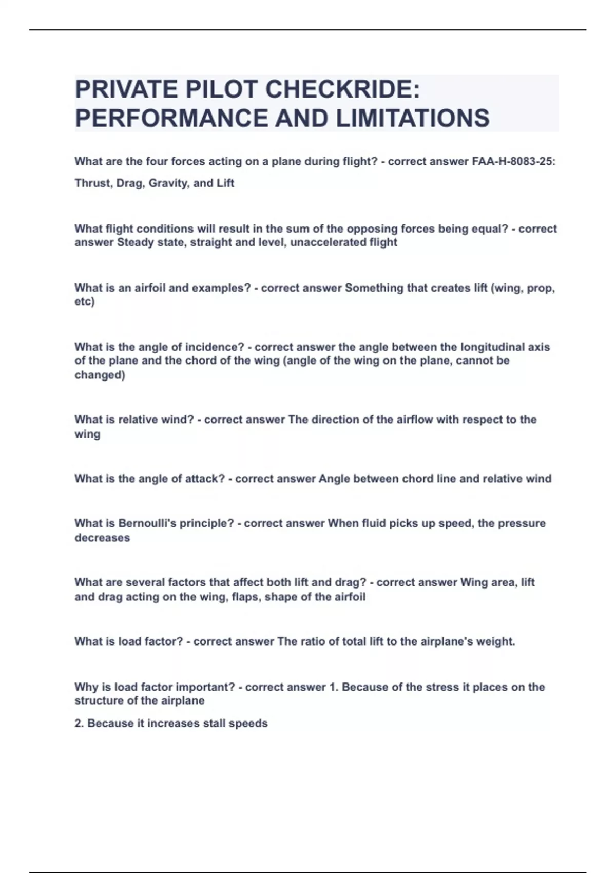 PRIVATE PILOT CHECKRIDE PERFORMANCE AND LIMITATIONS|UPDATED&VERIFIED|100% SOLVED|GUARANTEED SUCCESS