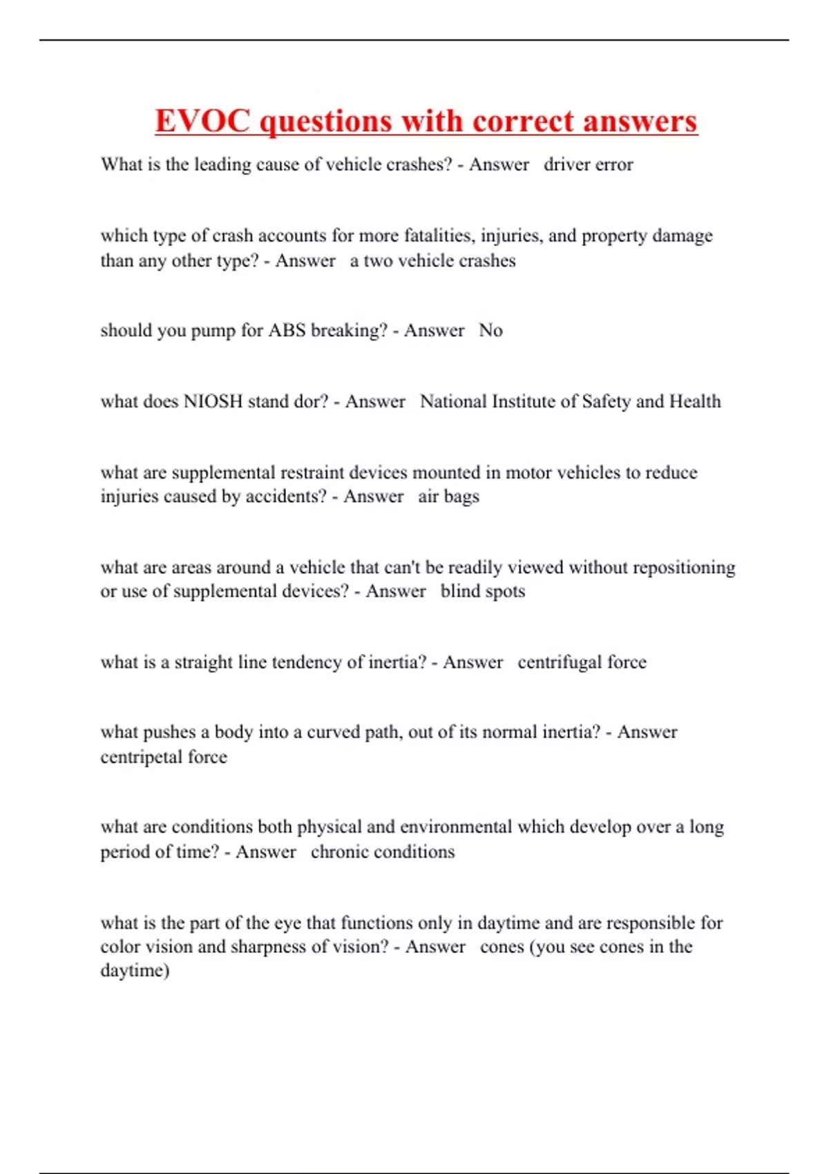 EVOC questions with correct answers