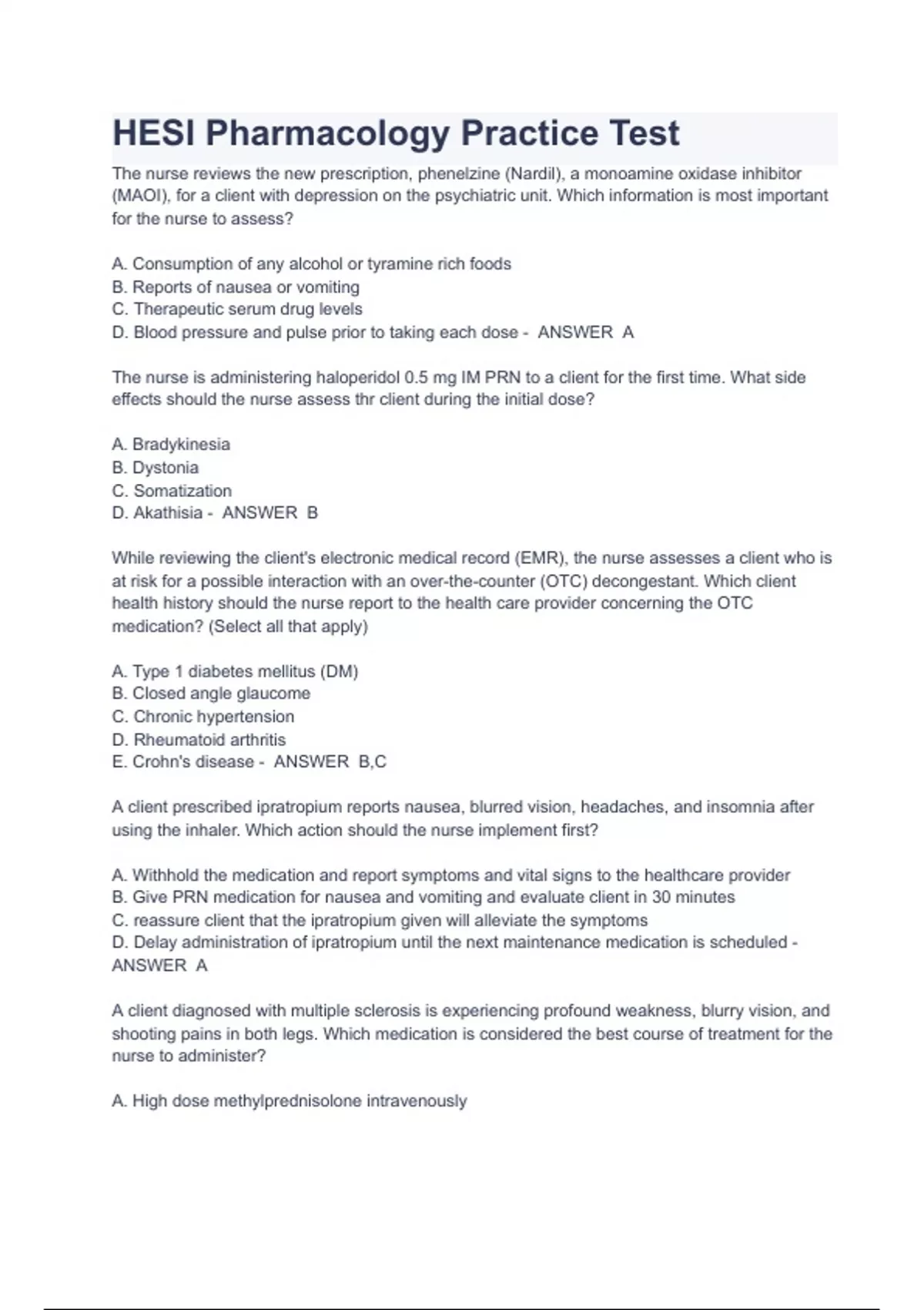 - HESI Pharmacology Practice