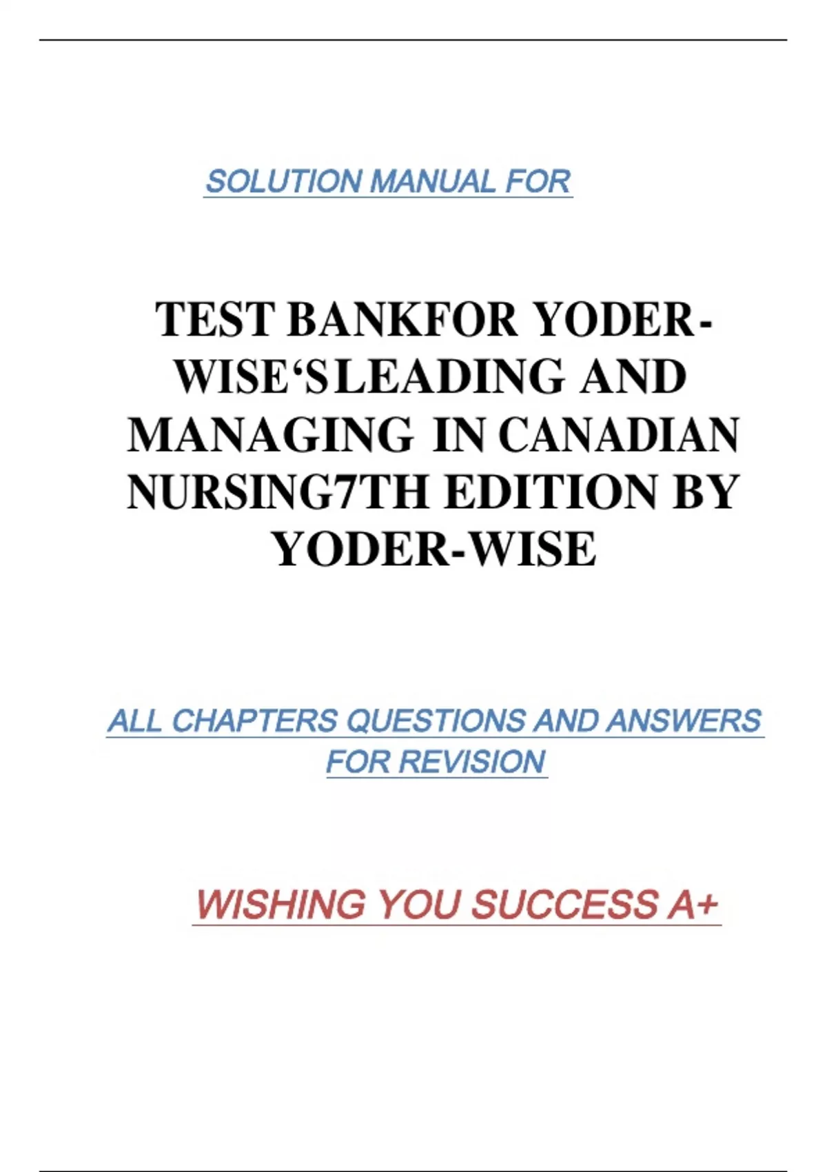TEST BANK FOR YODER- WISE‘S LEADING AND MANAGING IN CANADIAN NURSING7TH EDITION BY YODER-WISE