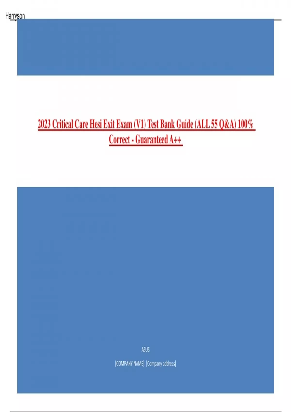 HESI OB PEDS Exam Test BANK Critical Care Hesi Exit Exam (V1) Test Bank Guide (ALL 55 Q&A) 100% Correct - Guaranteed A++ Harryson HESI PEDIATRIC (PEDS) RN EXIT EXAM 2023 Actual Exam Version 1 and 2 (V1 & V2) AGUARANTEED GRADE A+ EXAMINATION STUDY GUIDE 2023 2023HESI Pediatric (PEDS) RN Exit Exam: V1 & V2. Harryson HESI PEDIATRIC (PEDS) RN EXIT EXAM 2023 Actual Exam Version 1 and 2 (V1 & V2) AGUARANTEED GRADE A+ EXAMINATION STUDY GUIDE 2023 1 = A Harryson HESI PEDIATRIC (PEDS) RN EXIT EXAM 2023 Actual Exam Version 1 and 2 (V1 & V2) AGUARANTEED GRADE A+ EXAMINATION STUDY GUIDE 2023