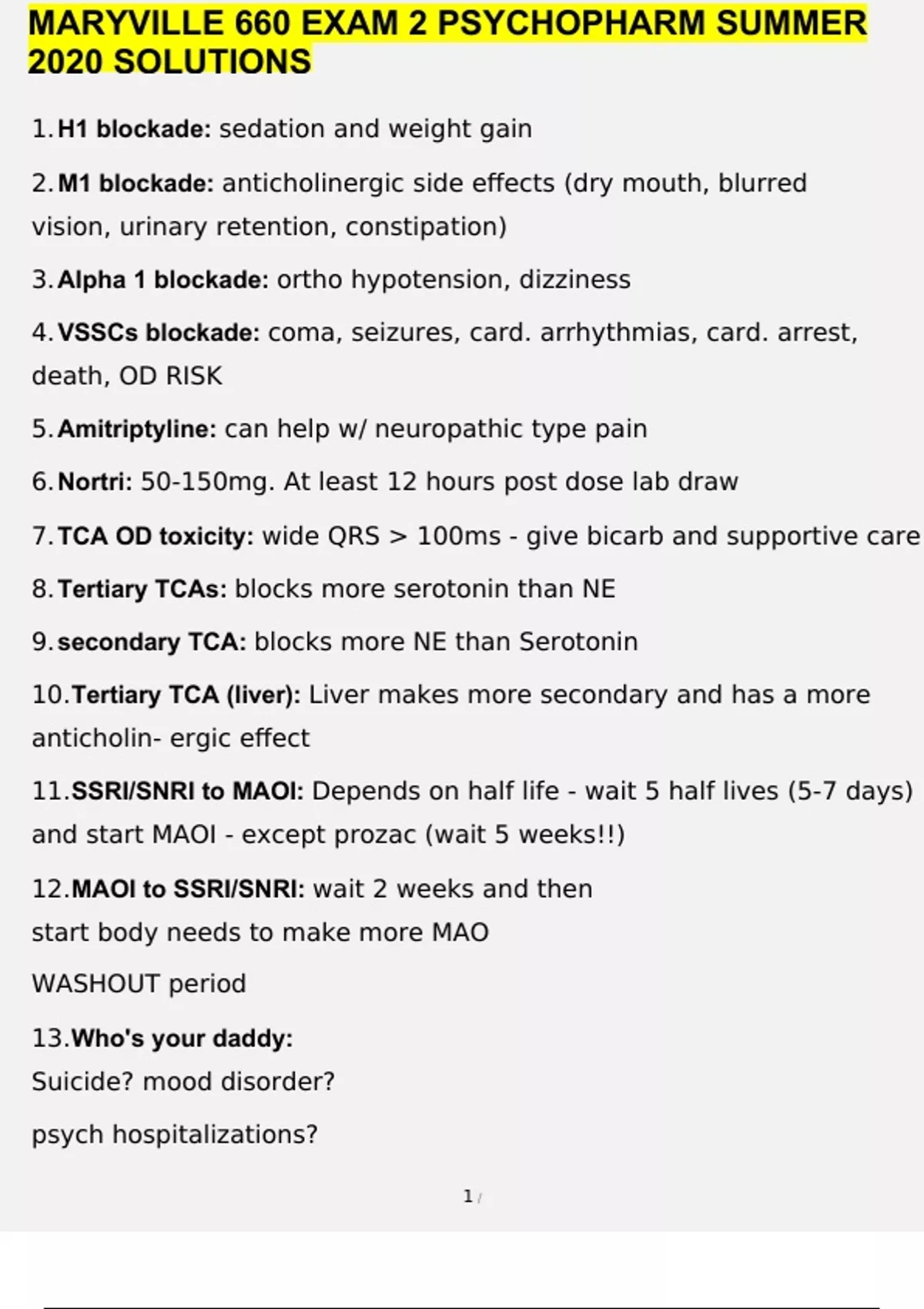 MARYVILLE 660 EXAM 2 PSYCHOPHARM SUMMER 2020 SOLUTIONS QUESTIONS AND ANSWERS GRADED A+