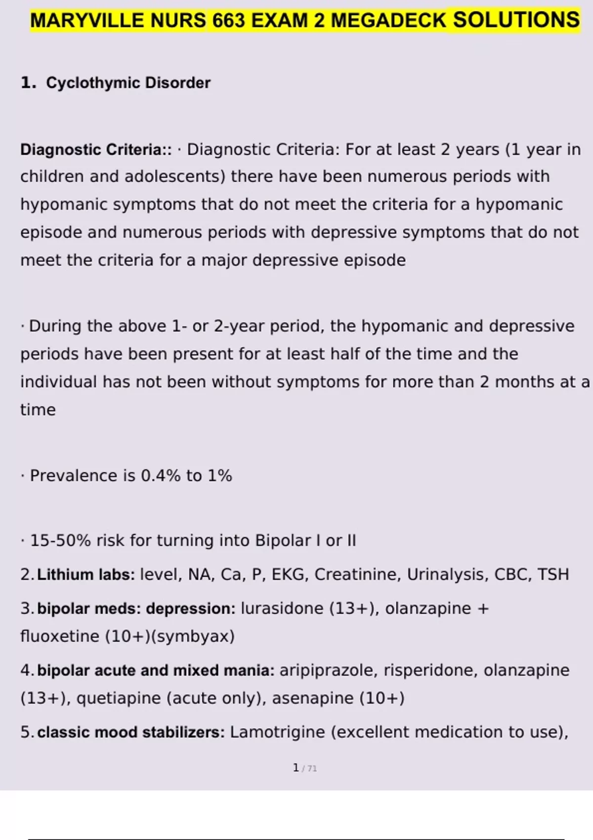 MARYVILLE NURS 663 EXAM 2 MEGADECK SOLUTIONS QUESTIONS AND ANSWERS A+ GRADED