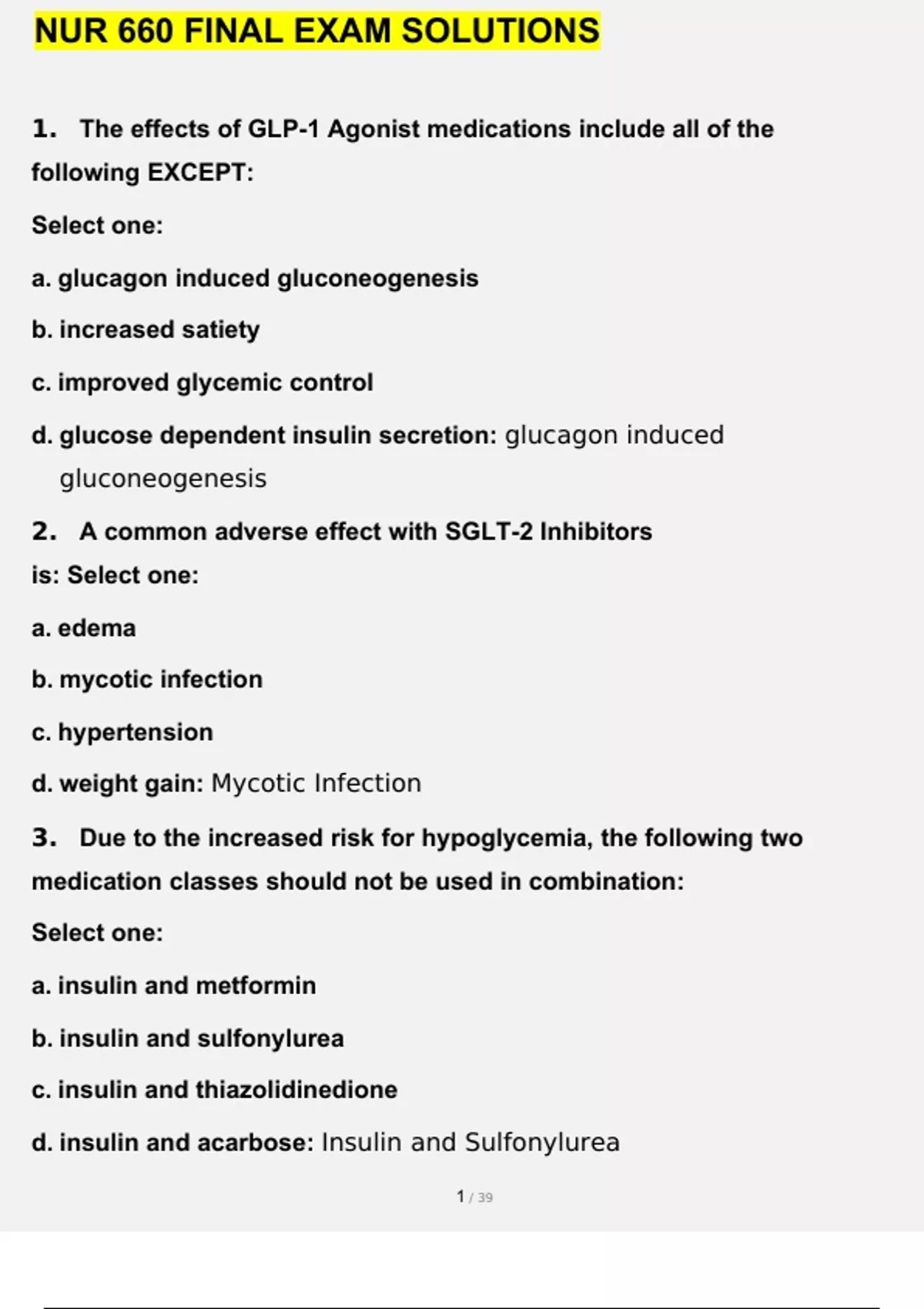 NUR 660 FINAL EXAM SOLUTIONS QUESTIONS AND ANSWERS GRADED A+