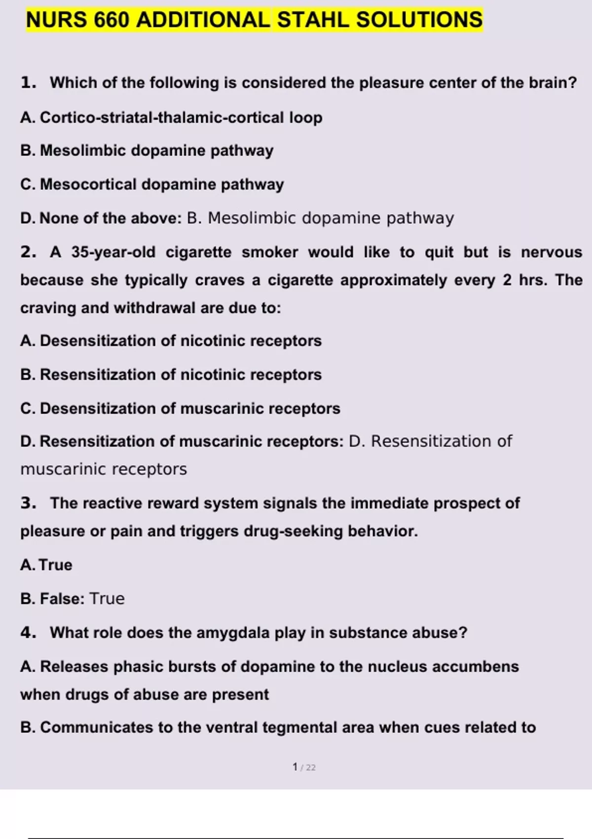 NURS 660 ADDITIONAL STAHL SOLUTIONS QUESTIONS AND ANSWERS GRADED A+