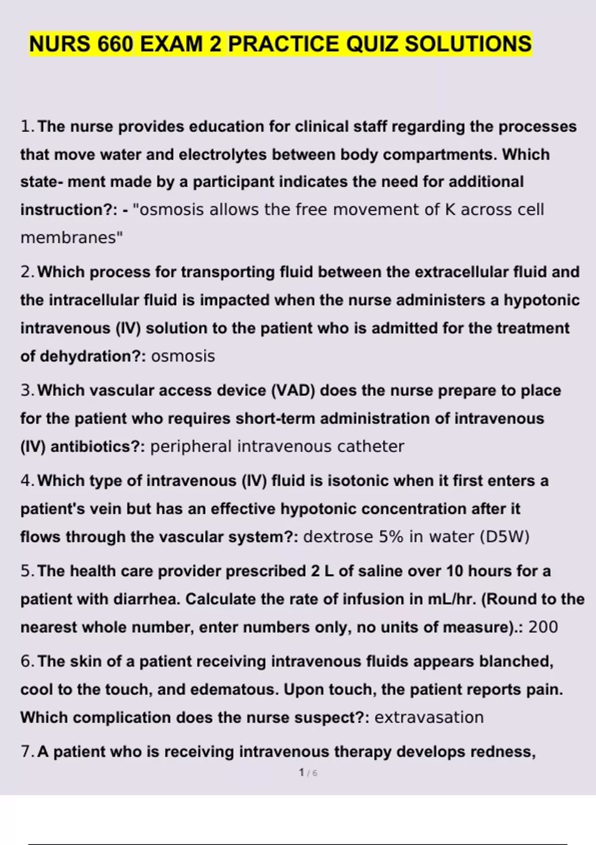 NURS 660 EXAM 2 PRACTICE QUIZ SOLUTIONS QUESTIONS AND ANSWERS A+ GRADED