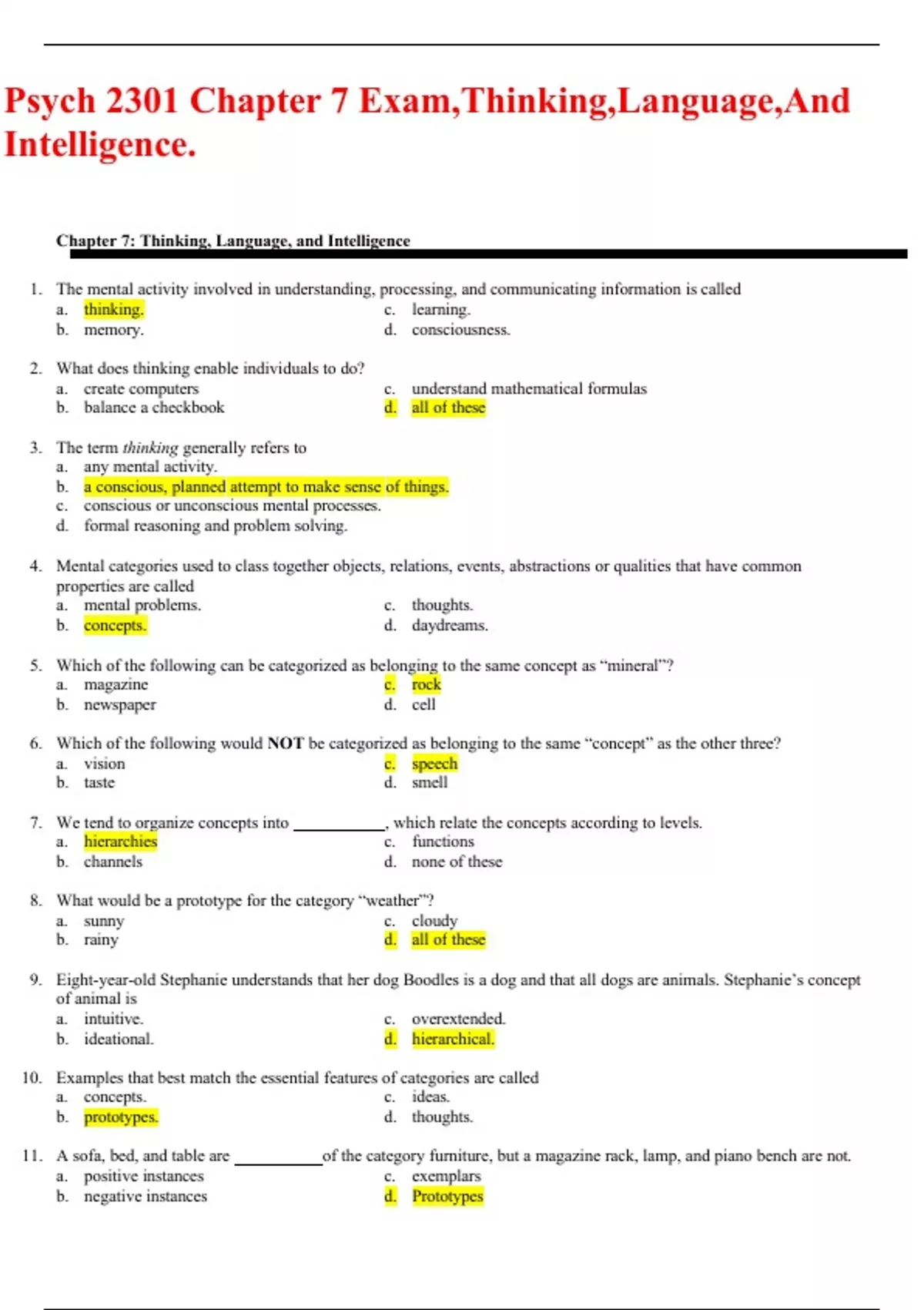 Psych 2301 Chapter 7 Exam,Thinking,Language,And Intelligence.