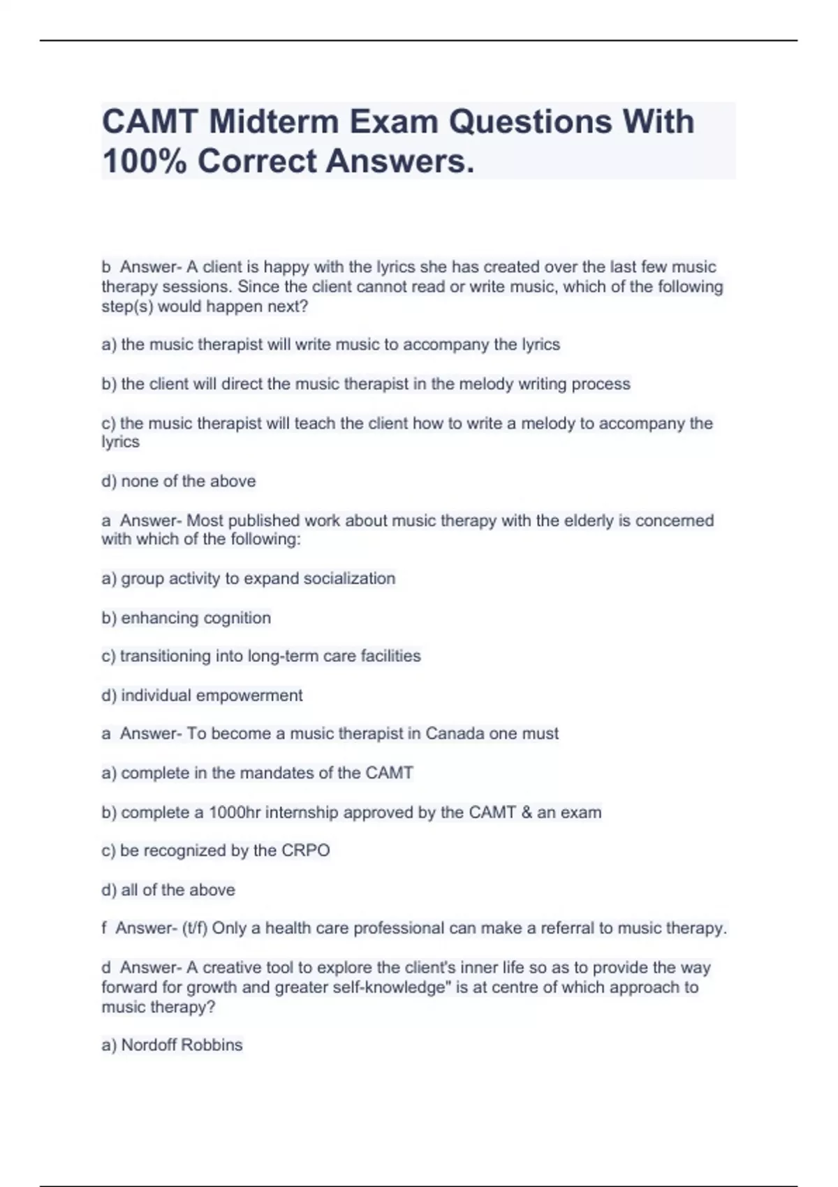 f Answer- (t/f) Only a health care professional can make a referral to music therapy.