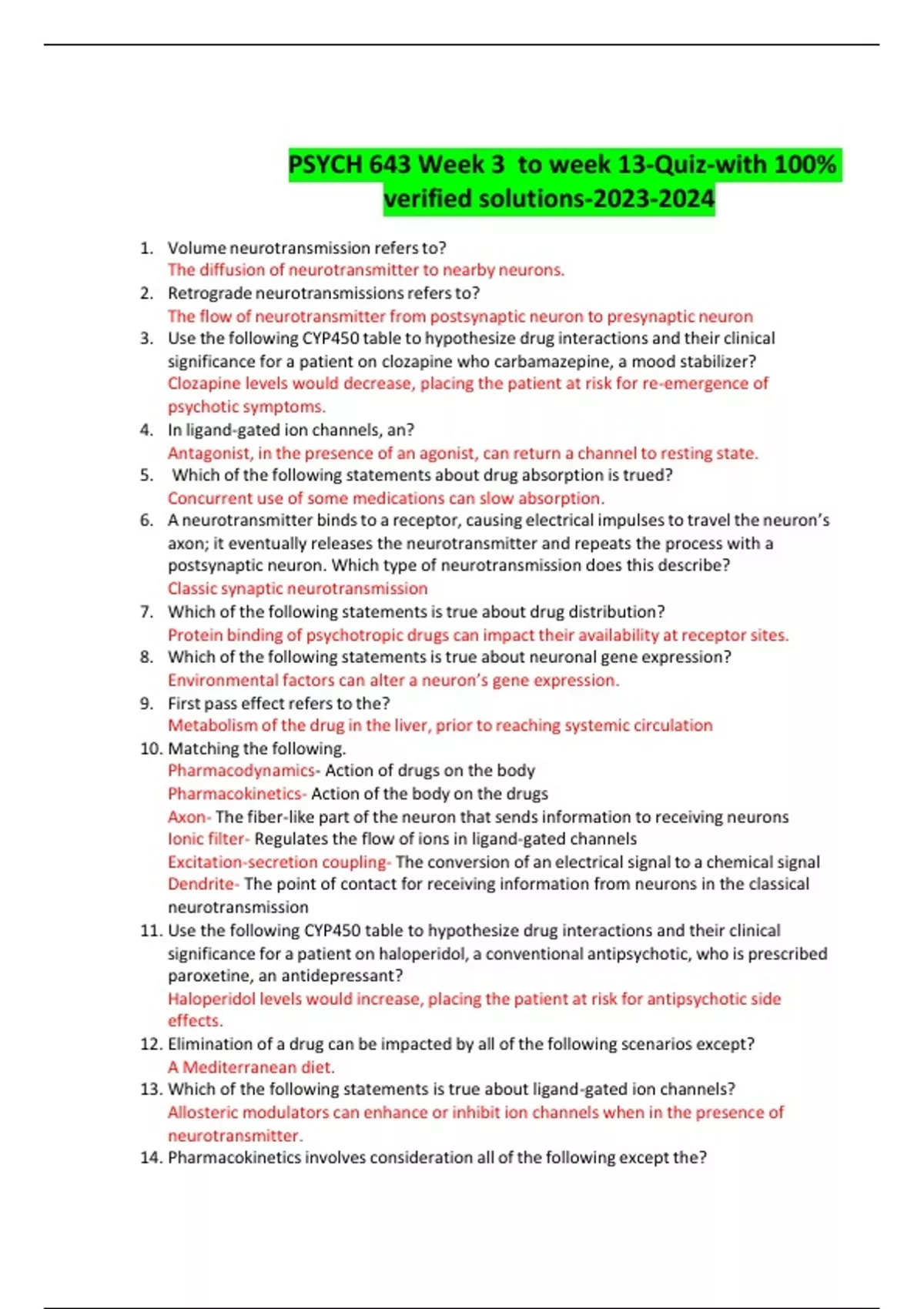 PSYCH 643 Week 3 to week 13-Quiz-with 100% verified solutions-
