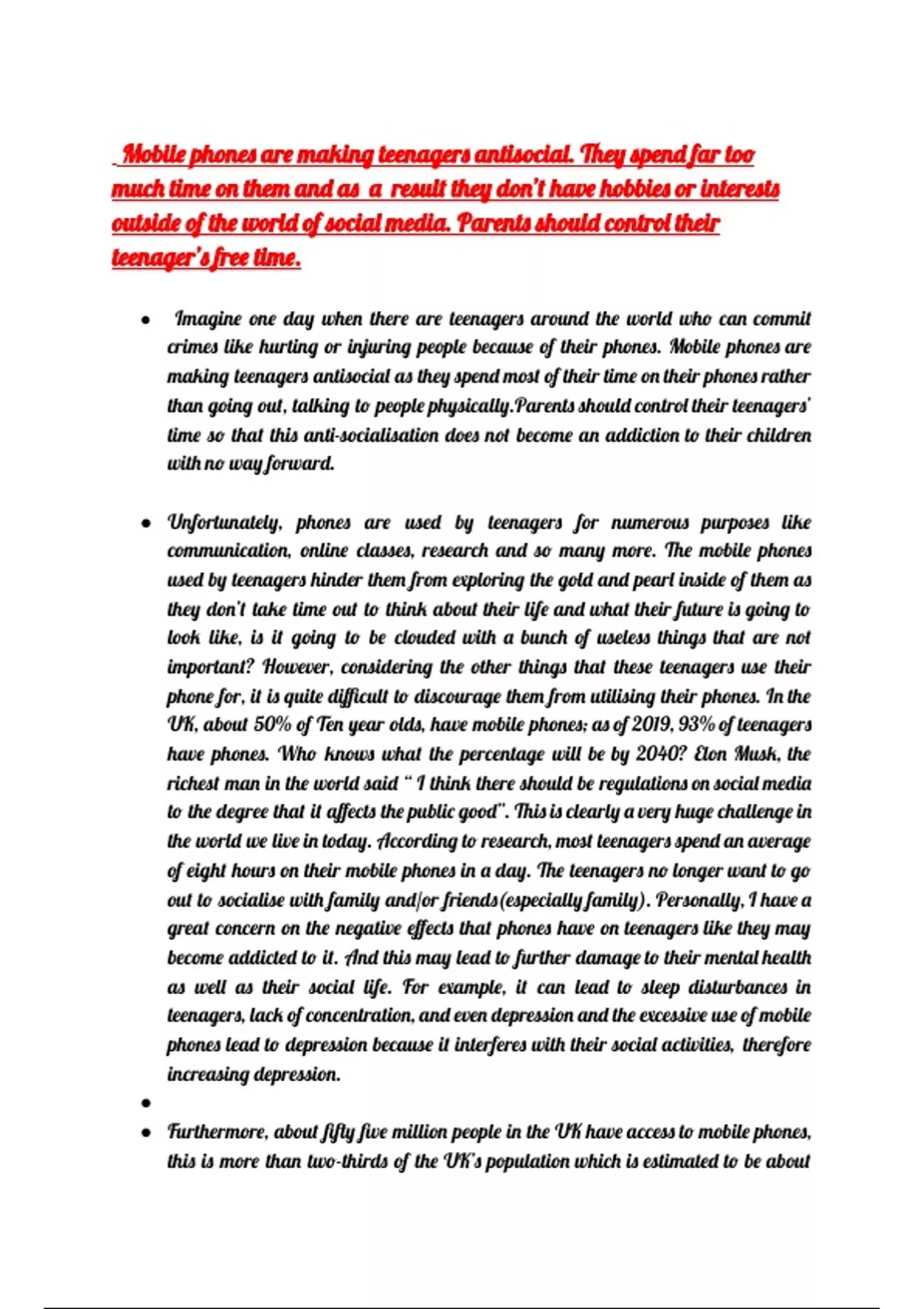 Mobile phones are making teenagers antisocial. They spend far too