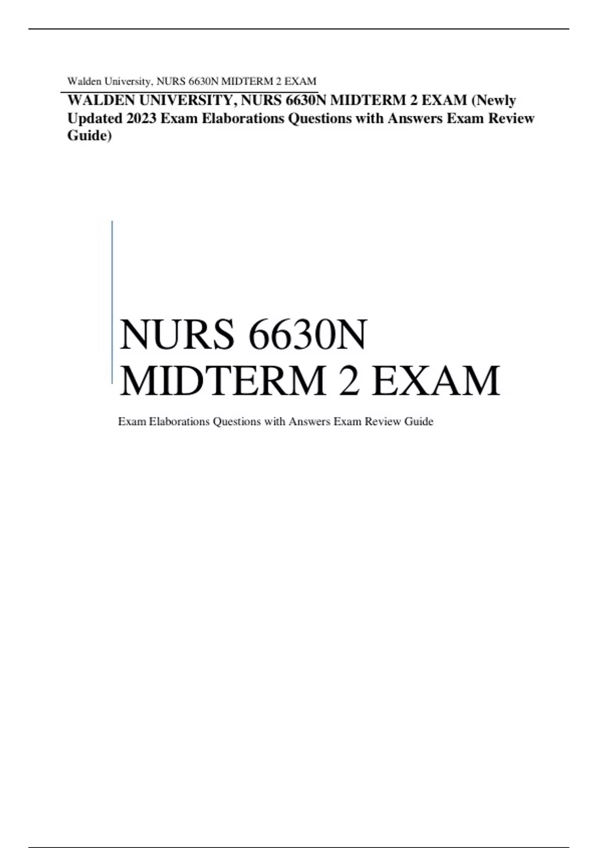 WALDEN UNIVERSITY, NURS 6630N MIDTERM 2 EXAM (Newly Updated 2023 Exam Elaborations Questions with Answers Exam Review Guide) Latest Verified Review 2023 Practice Questions and Answers for Exam Preparation, 100% Correct with Explanations, Highly Recommen