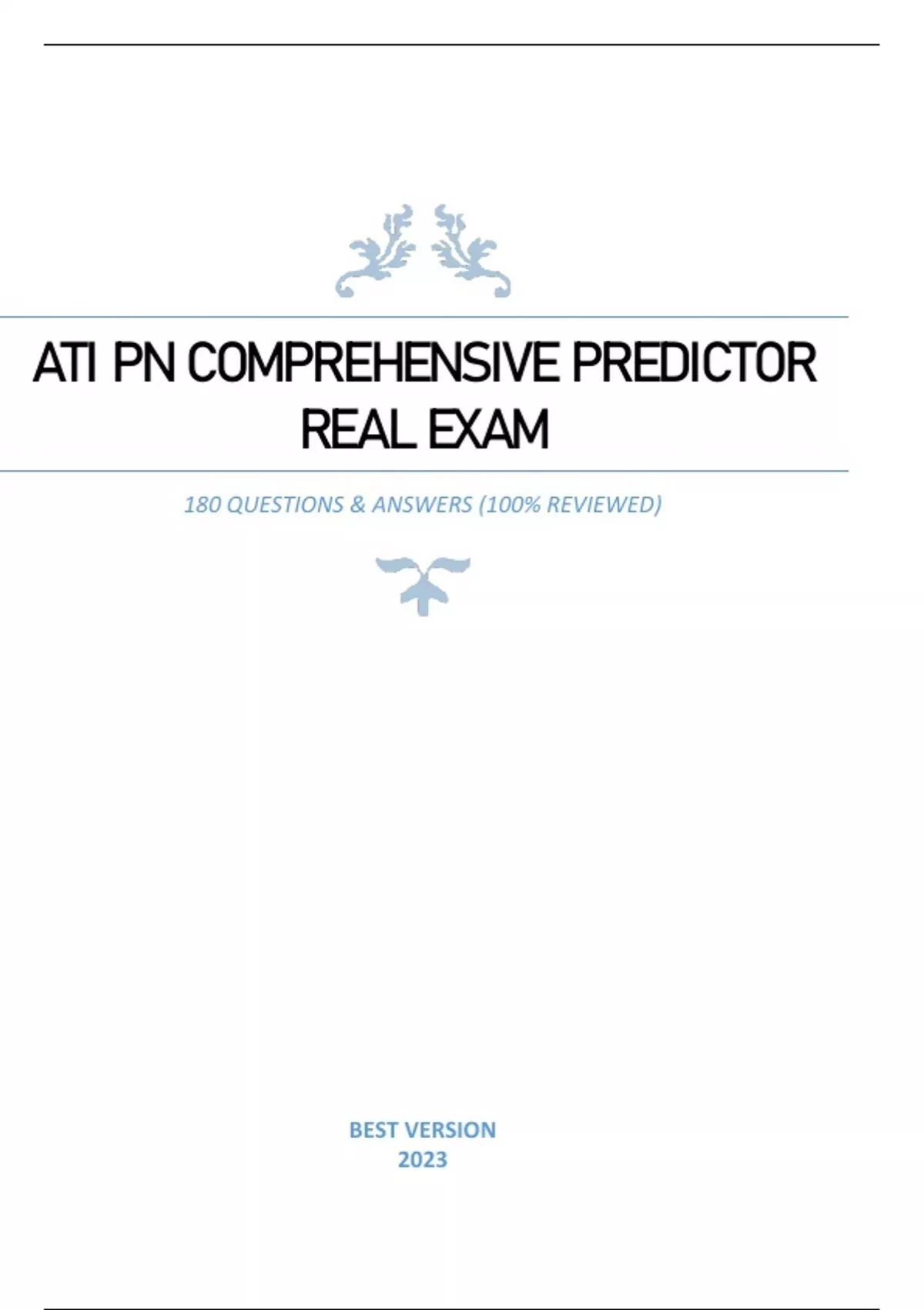 ATI PN COMPREHENSIVE PREDICTOR REAL EXAM - 180 QUESTIONS & ANSWERS (RATED 98%) 100% REVIEWED LATEST UPDATE 2023