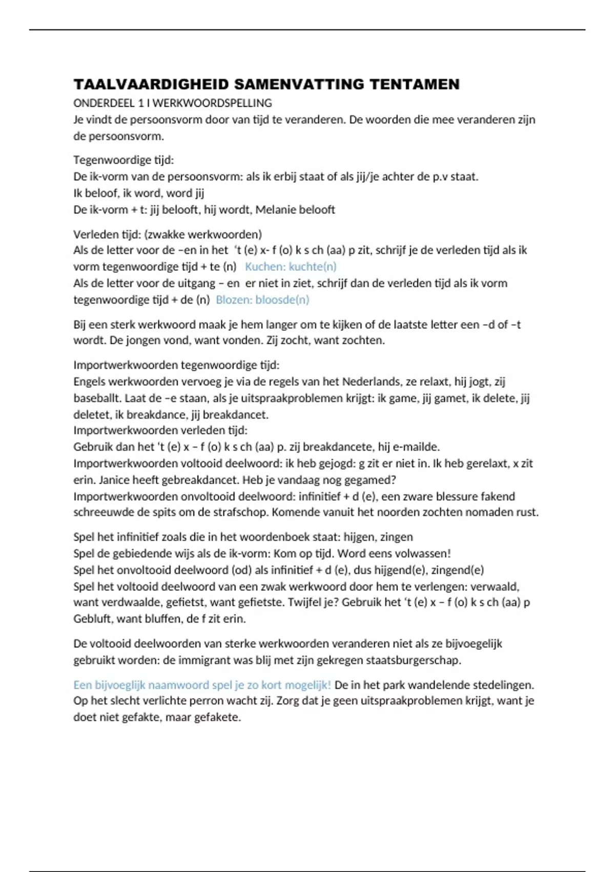 Samenvatting taaltoets jaar 1 (BSA) Viaa