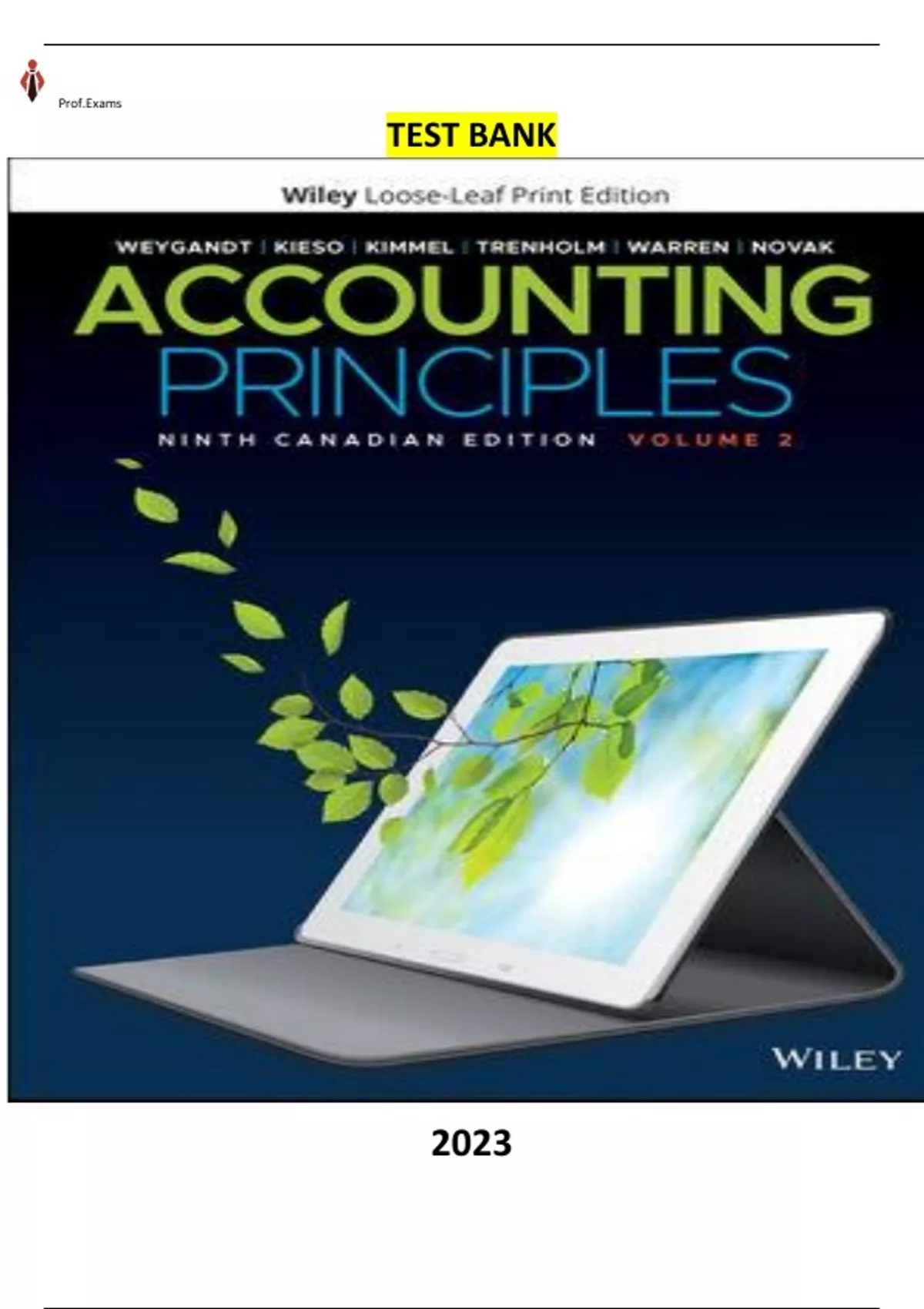 Accounting Principles, 9th Edition Volume II by Jerry J. Weygandt, Donald E. Kieso, Paul D. Kimmel, Barbara Trenholm, Anthony C. Warren & Lori Novak - Complete, Elaborated and Latest(Test Bank) ALL Chapters included updated for 2023 ISBN-10 6 ISBN-13 978-7 TABLE OF CONTENTS VOLUME One 1 Accounting in Action 1-1 2 The Recording Process 2-1 3 Adjusting the Accounts 3-1 4 Completion of the Accounting Cycle 4-1 5 Accounting for Merchandising Operations 5-1 6 Inventory Costing 6-1 7 Internal Control and Cash 7-1 8 Accounting for Receivables 8-1 9 Long-Lived Assets 9-1 10 Current Liabilities and Payroll 10-1 Appendix A Specimen Financial Statements A- 1 Appendix B Sales Taxes B- 1 Appendix c Accounting Information Systems C- 1 VOLUME Two 9 Long-Lived Assets 9-1 10 Current Liabilities and Payroll 10-1 11 Financial Reporting Concepts 11-1 12 Accounting for Partnerships 12-1 13 Introduction to Corporations 13-1 14 Corporations: Additional Topics and Ifrs 14-1 15 Non-Current Liabilities 15-1 16 Investments 16-1 17 The Cash Flow Statement 17-1 18 Financial Statement Analysis 18-1 Accounting Principles 9th Edition Volume 2 Jerry J. Weygandt Donald E. Kieso Paul D. Kimmel Barbara Trenholm Anthony C. Warren Lori Novak Complete, Elaborated and Latest Test Bank ALL Chapters included updated 2023