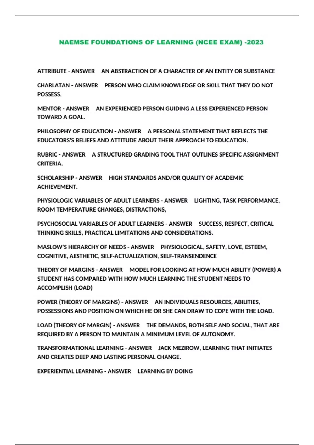 NAEMSE FOUNDATIONS OF LEARNING (NCEE EXAM) -2023