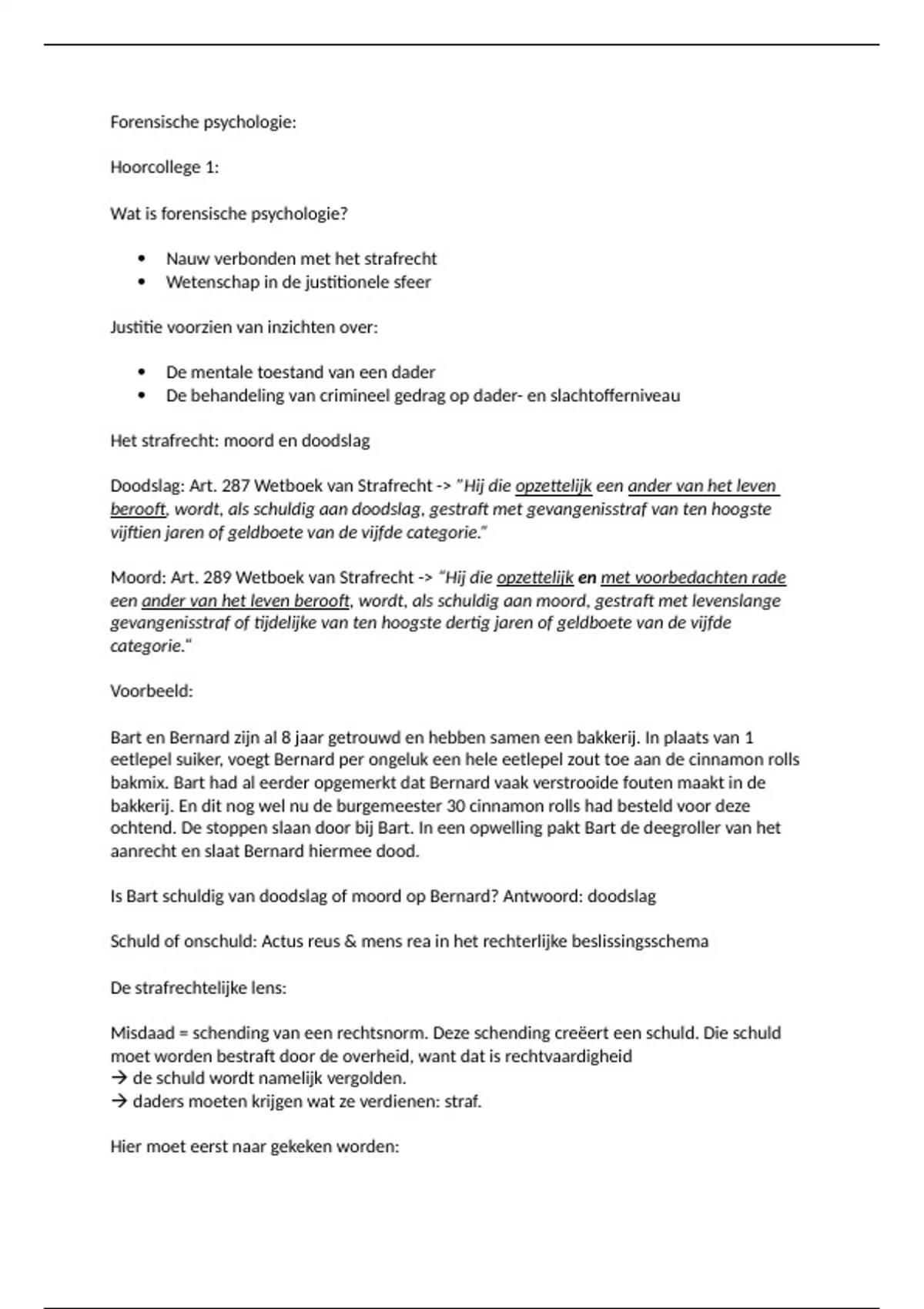 Document van de aantekeningen van mijn hoorcolleges Forensische psychologie. Hele uitgebreide aantekeningen! Ook zit er een lijstje bij met de dingen die op mijn toets werden gevraagd.