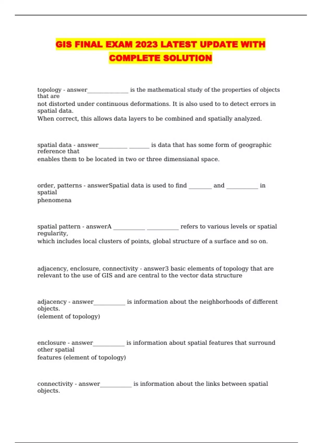 adjacency, enclosure, connectivity - answer3 basic elements of topology that are