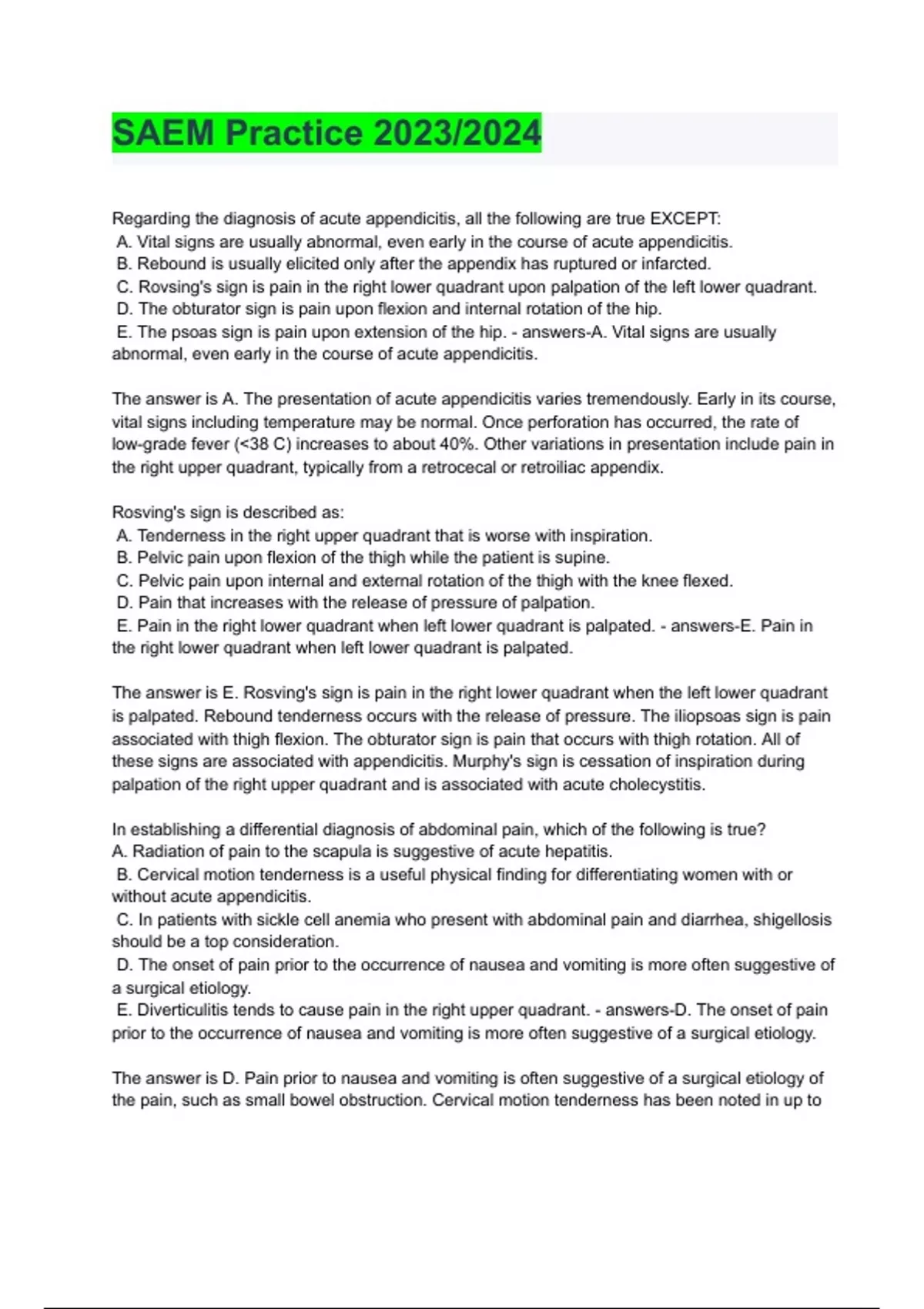 SAEM Practice 2023/2024/100%correct answers/Q&A