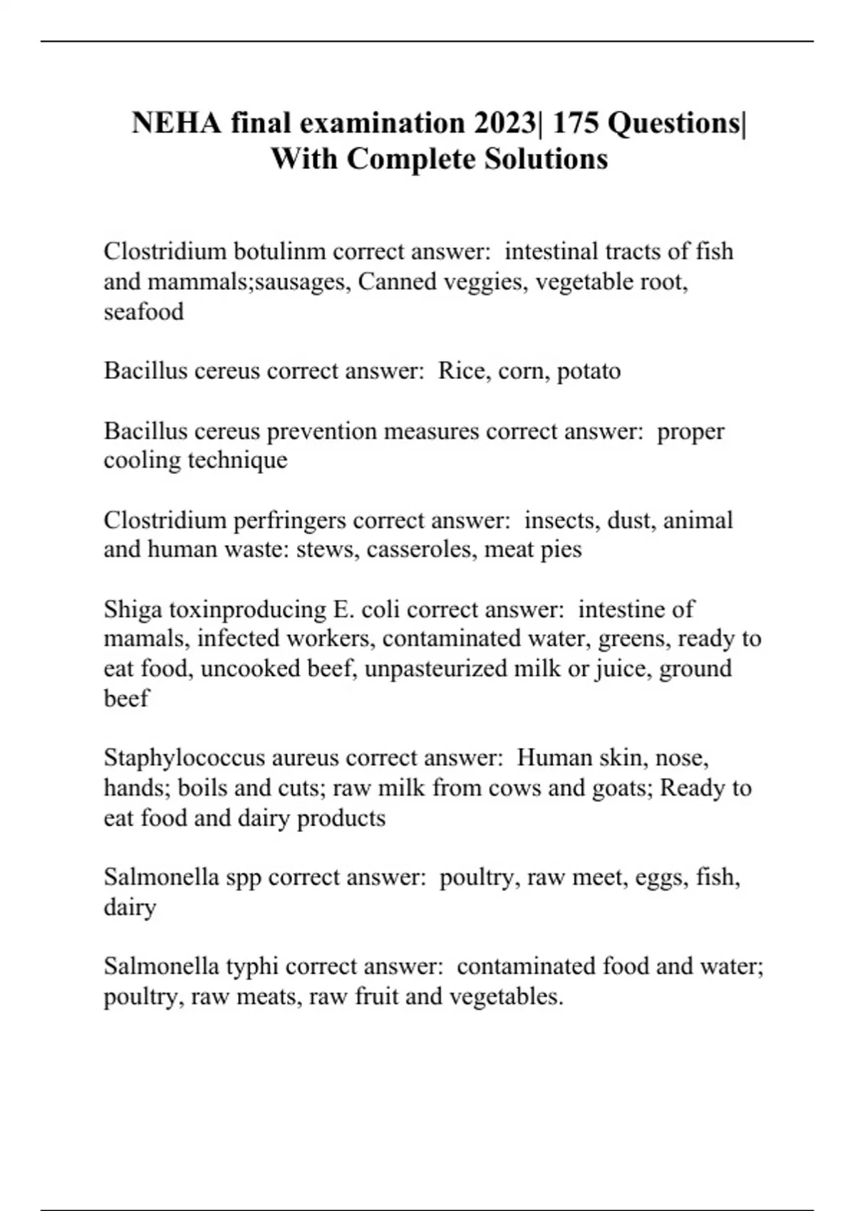 NEHA final examination 2023| 175 Questions| With Complete Solutions