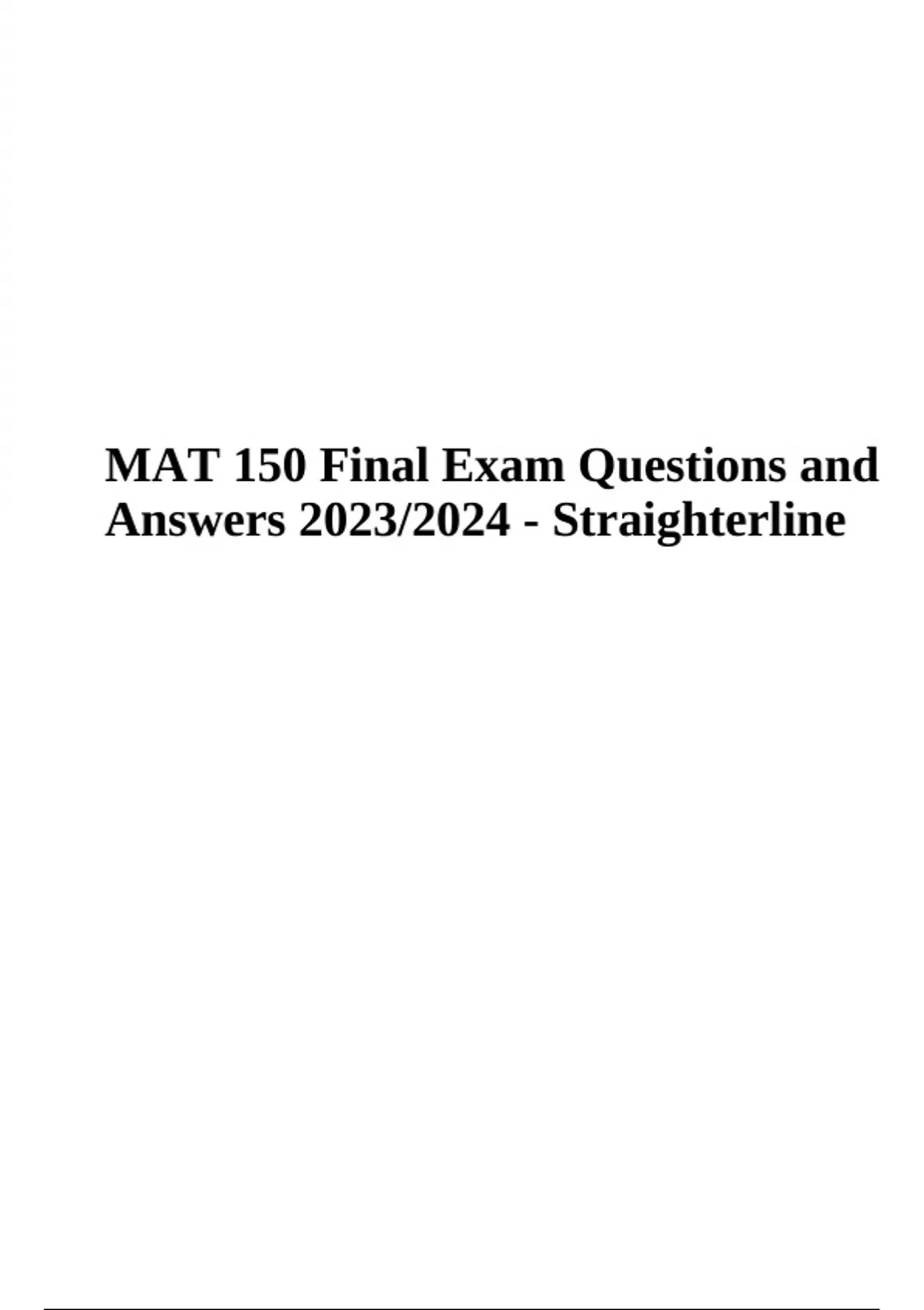 MAT 150 Final Exam Questions and Answers | Latest 2023/2024 | Straighterline