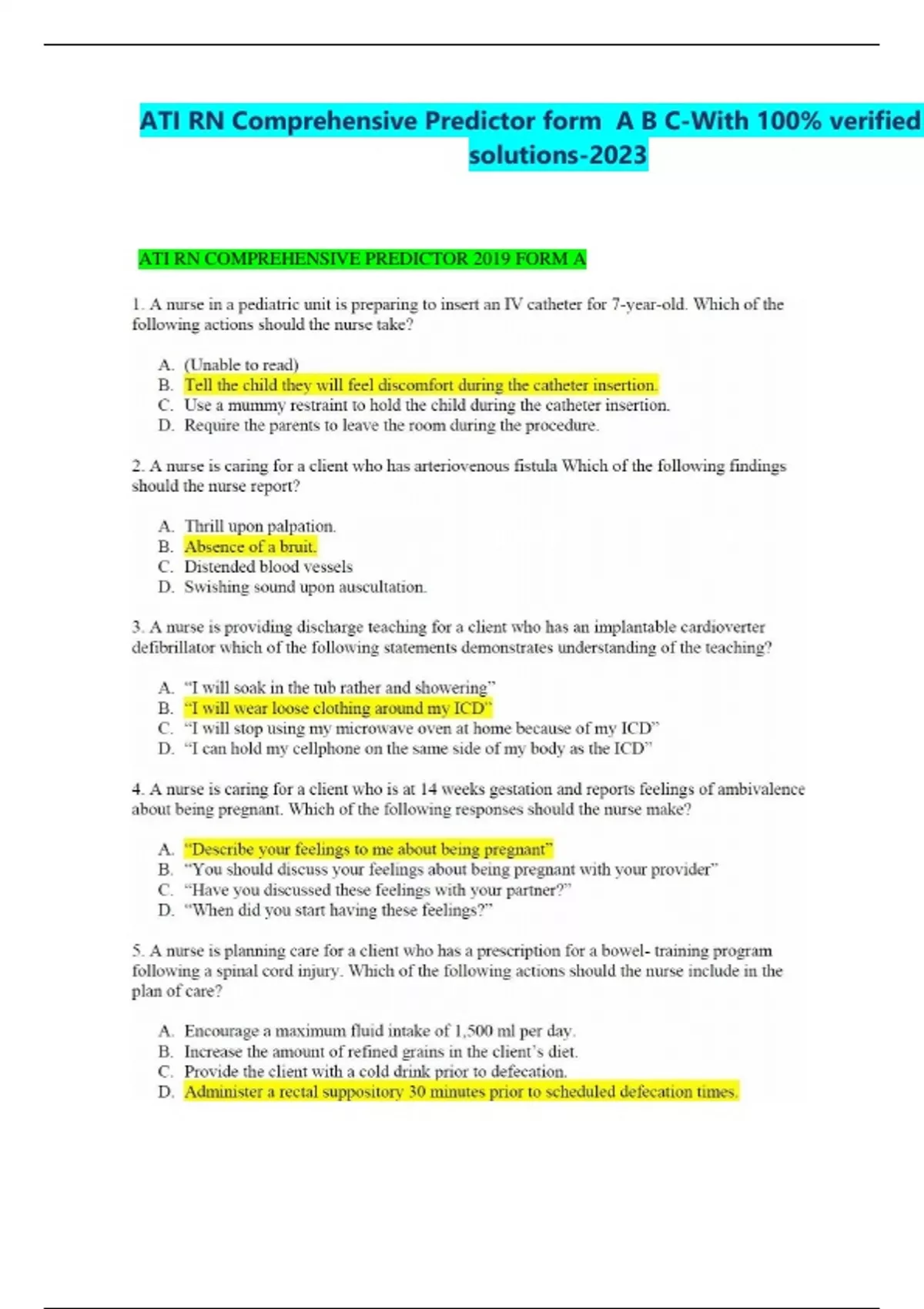 ati rn comprehensive predictor form a b c