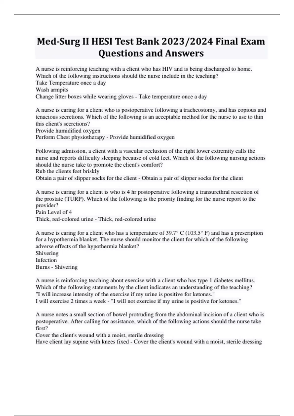 Med-Surg II HESI Test Bank 2023/2024 Final Exam Questions and Answers