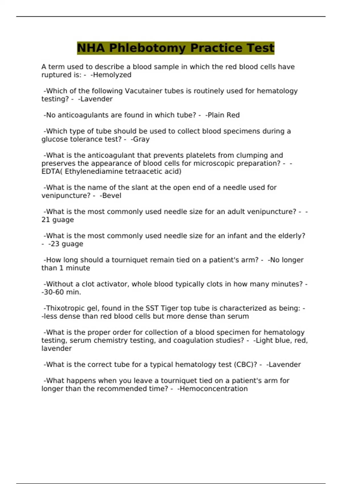 NHA Phlebotomy Practice Test