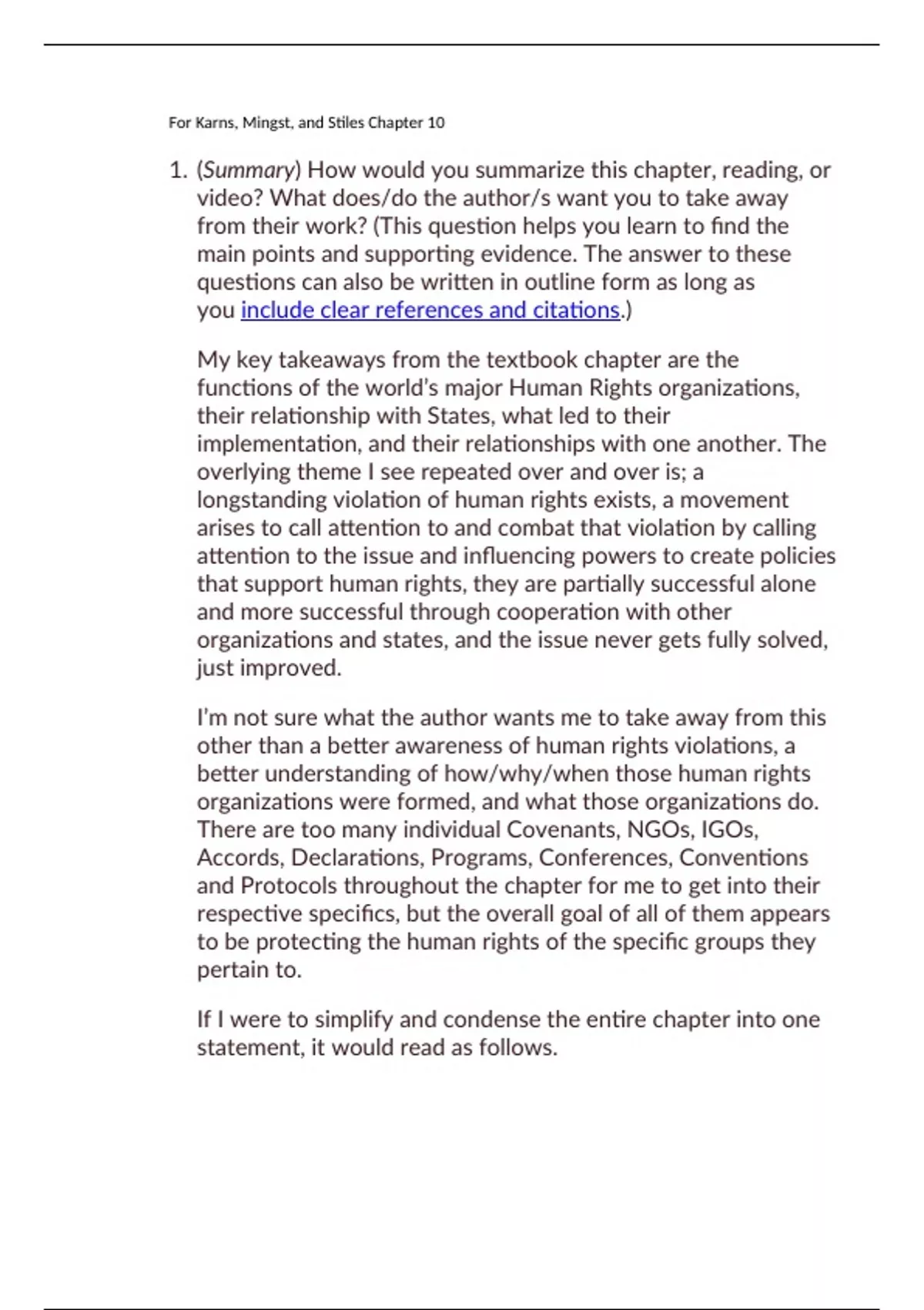 These notes summarize chapter 10 of "International Organizations" (3rd edition), by Karns, Mingst and Stiles. To summarize the chapter in my own words, The powers of the world have a responsibility to help those who can’t help themselves, and to protect people from those who would abuse their basic human rights. States and powers should not be immune to, or out of reach of, the just scrutiny and reprisal of the rest of the world, should those entities infringe upon the rights that every human being is entitled to.