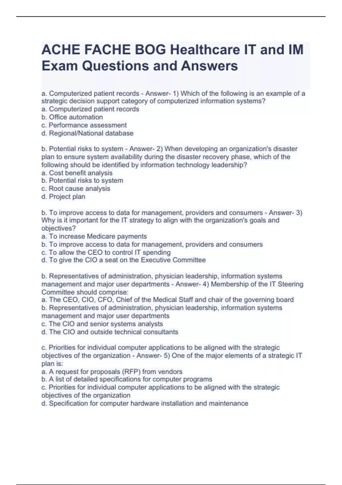 ACHE FACHE BOG Healthcare IT and IM Exam Questions and Answers