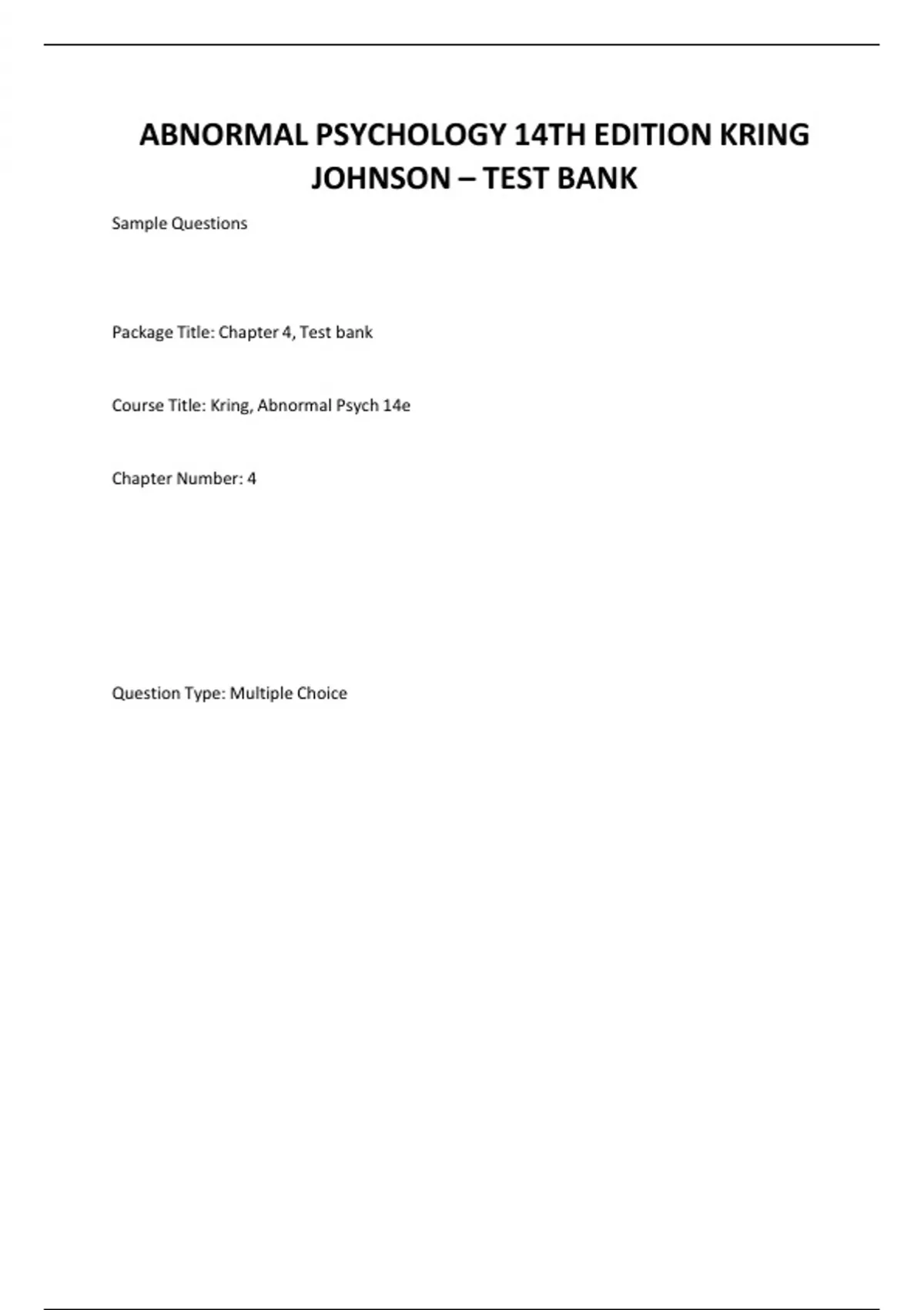 ABNORMAL PSYCHOLOGY 14TH EDITION KRING JOHNSON TEST BANK ABNORMAL PSYCHOLOGY 14TH EDITION KRING JOHNSON TEST BANK ABNORMAL PSYCHOLOGY 14TH EDITION KRING JOHNSON TEST BANK