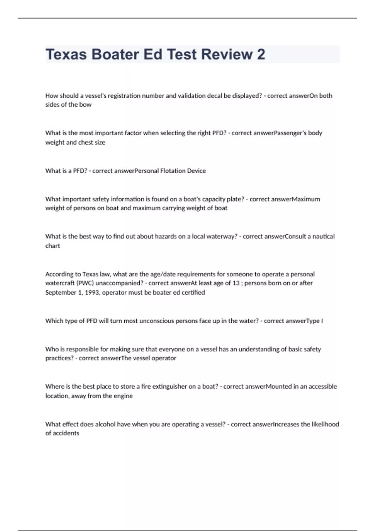 Texas Boater Ed Test Review 2 exam 2023 with 100% correct answers