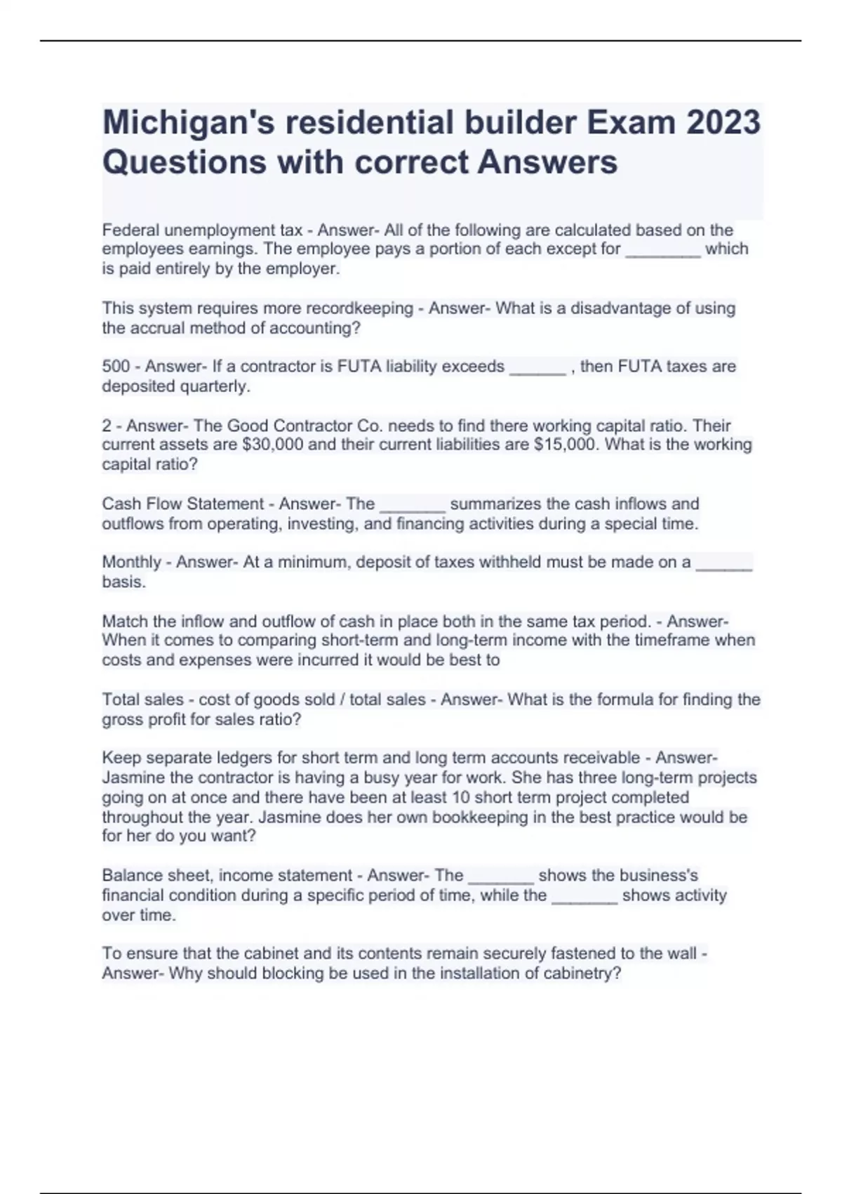 michigans residential builder exam 2023 questions