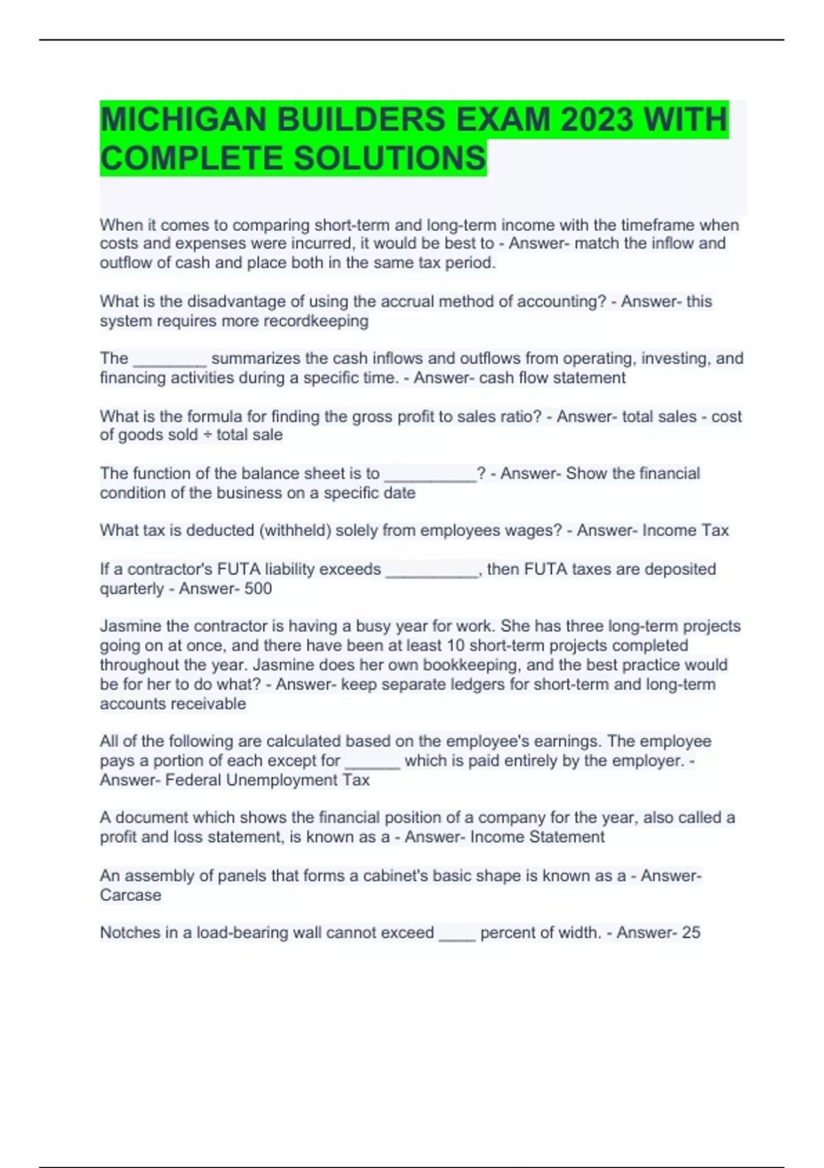MICHIGAN BUILDERS EXAM 2023 WITH COMPLETE SOLUTIONS