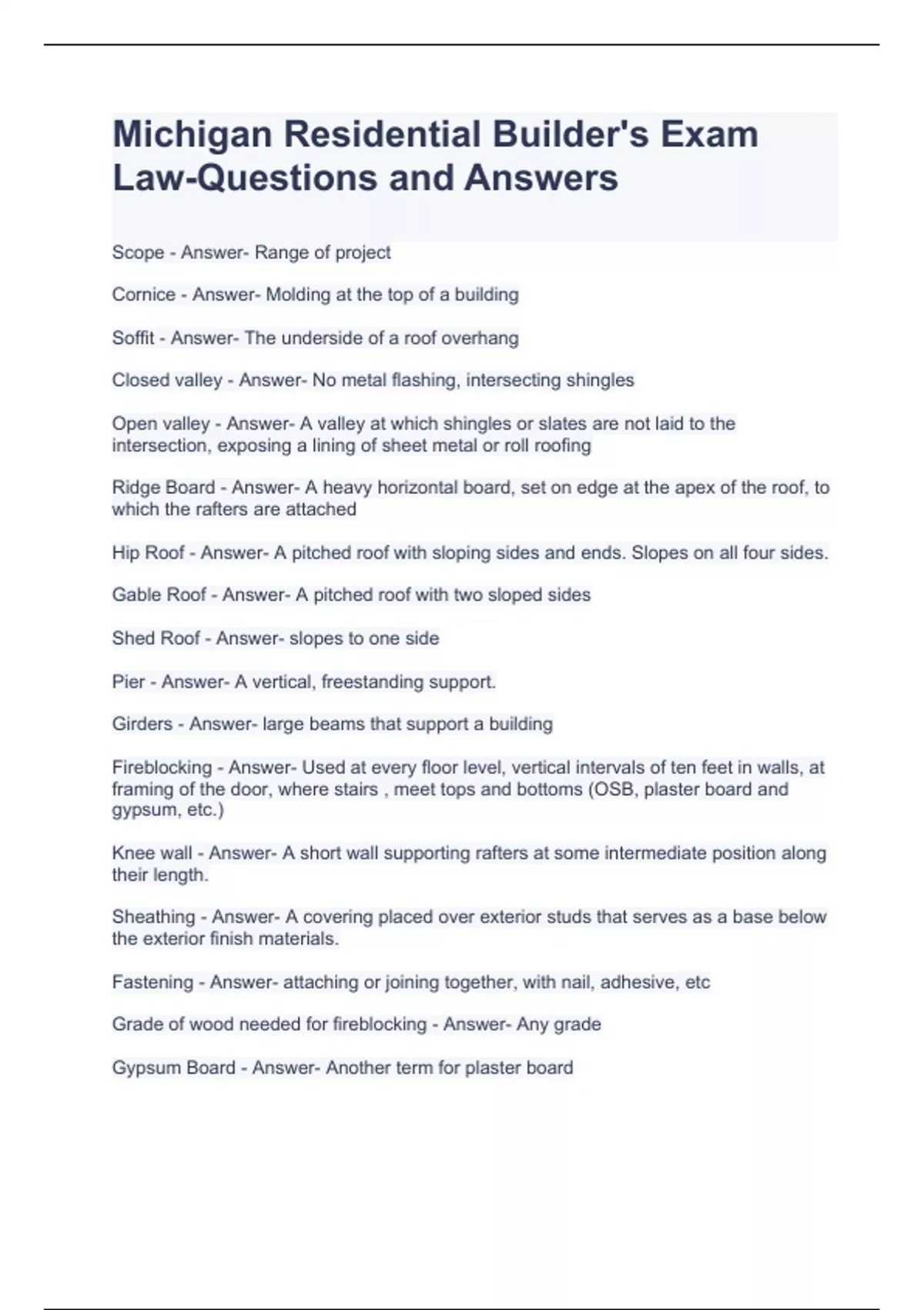 Michigan Residential Builder's Exam Law-Questions and Answers