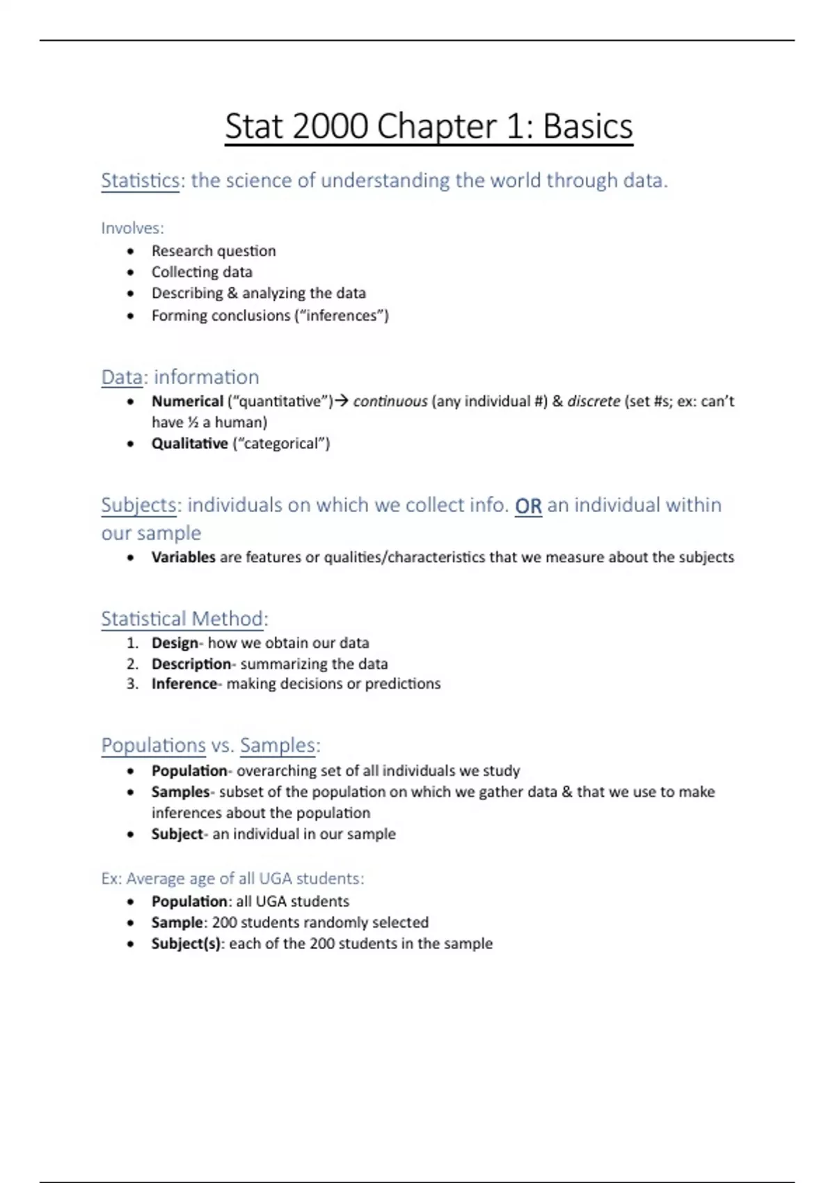 I have provided well written and detailed class notes from UGA's statistics class (STAT 2000) taught by Joseph Powell.