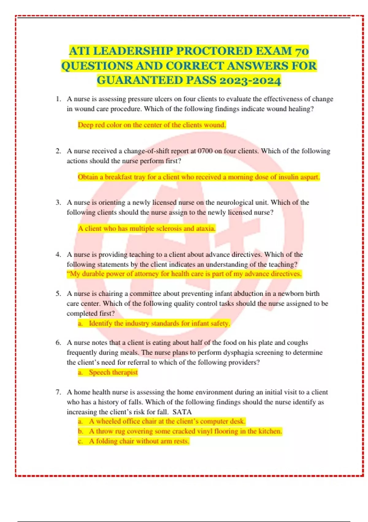ATI LEADERSHIP PROCTORED EXAM 70 QUESTIONS AND CORRECT ANSWERS FOR GUARANTEED PASS
