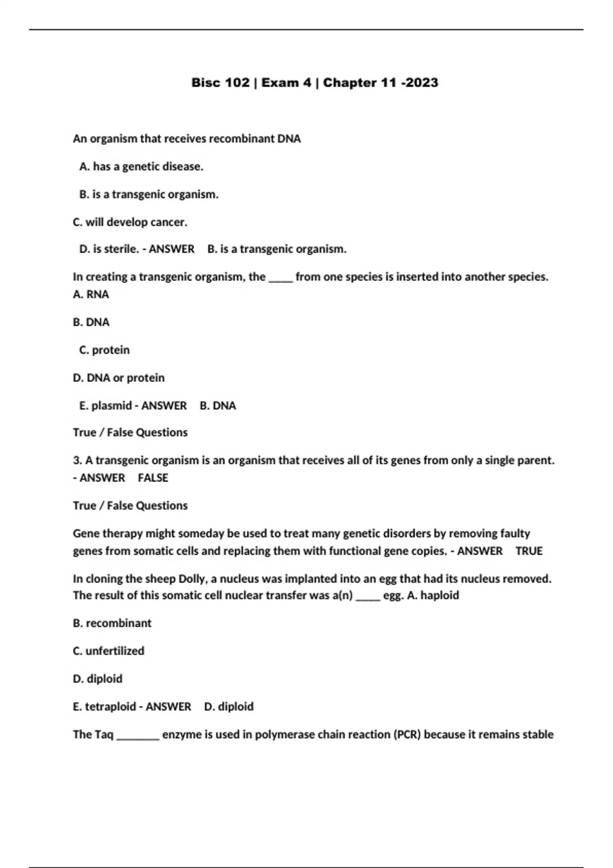 Bisc 102 | Exam 4 | Chapter 11 -2023...