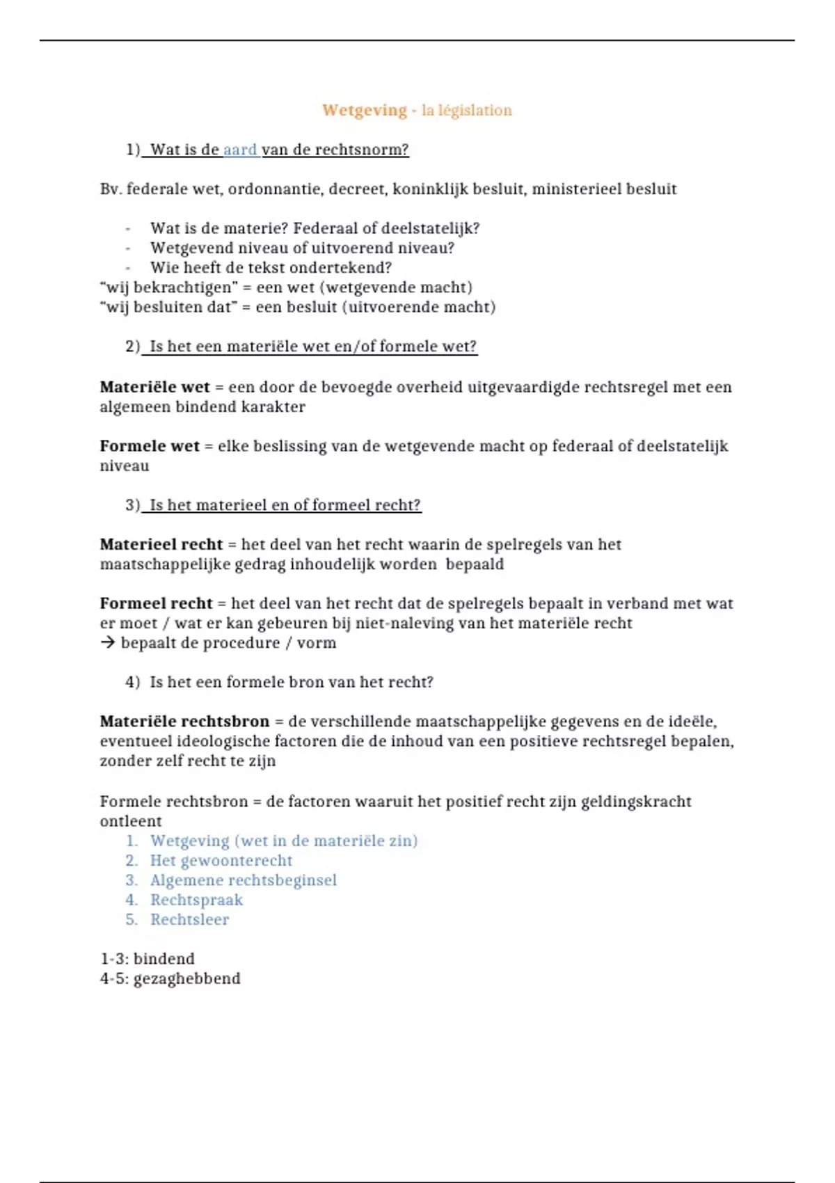 1. Wetgeving (wet in de materiële zin)