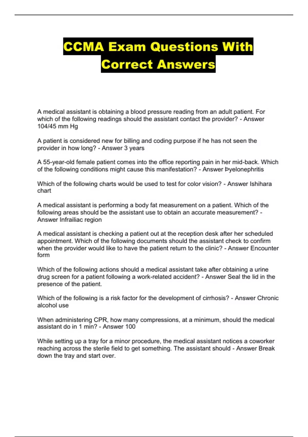 CCMA Exam Questions With Correct Answers