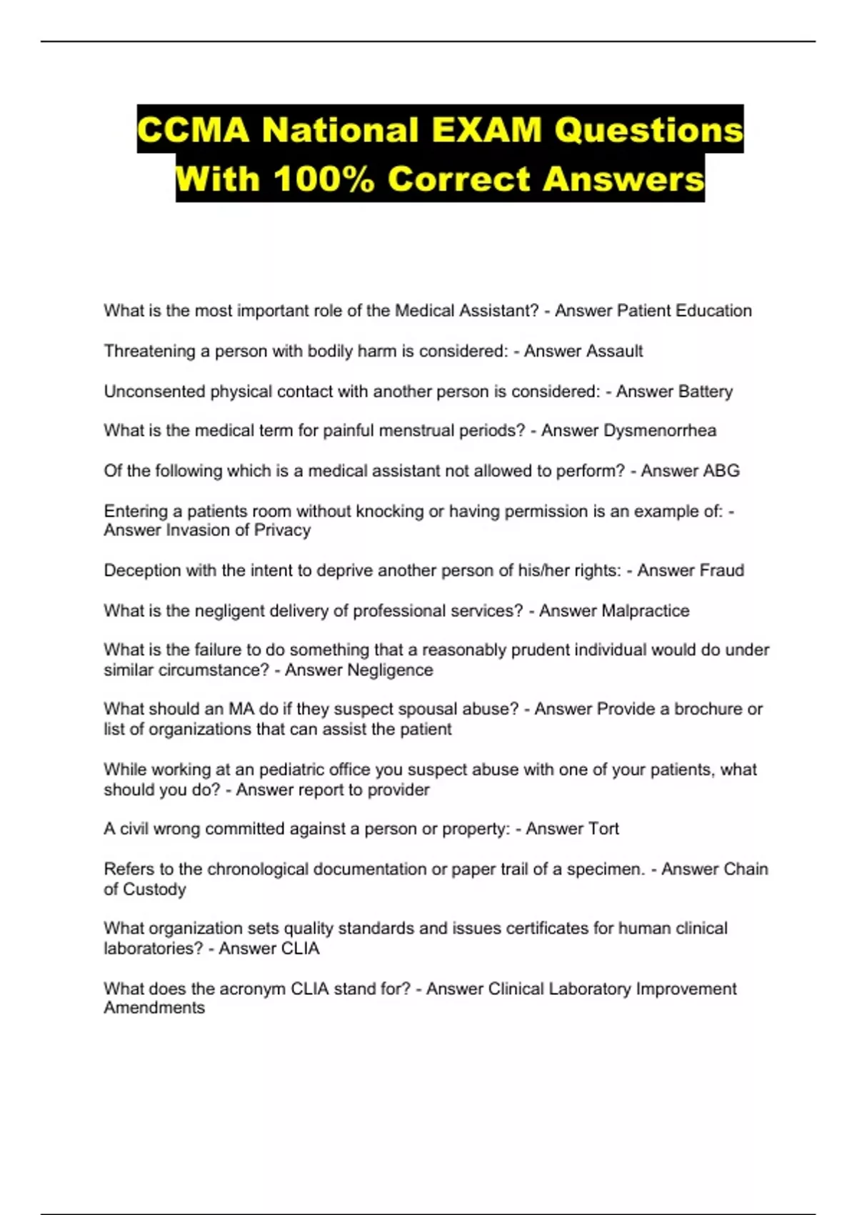 CCMA PACKAGED EXAMS WITH QUESTIONS AND CORRECT ANSWERS GRADED A+