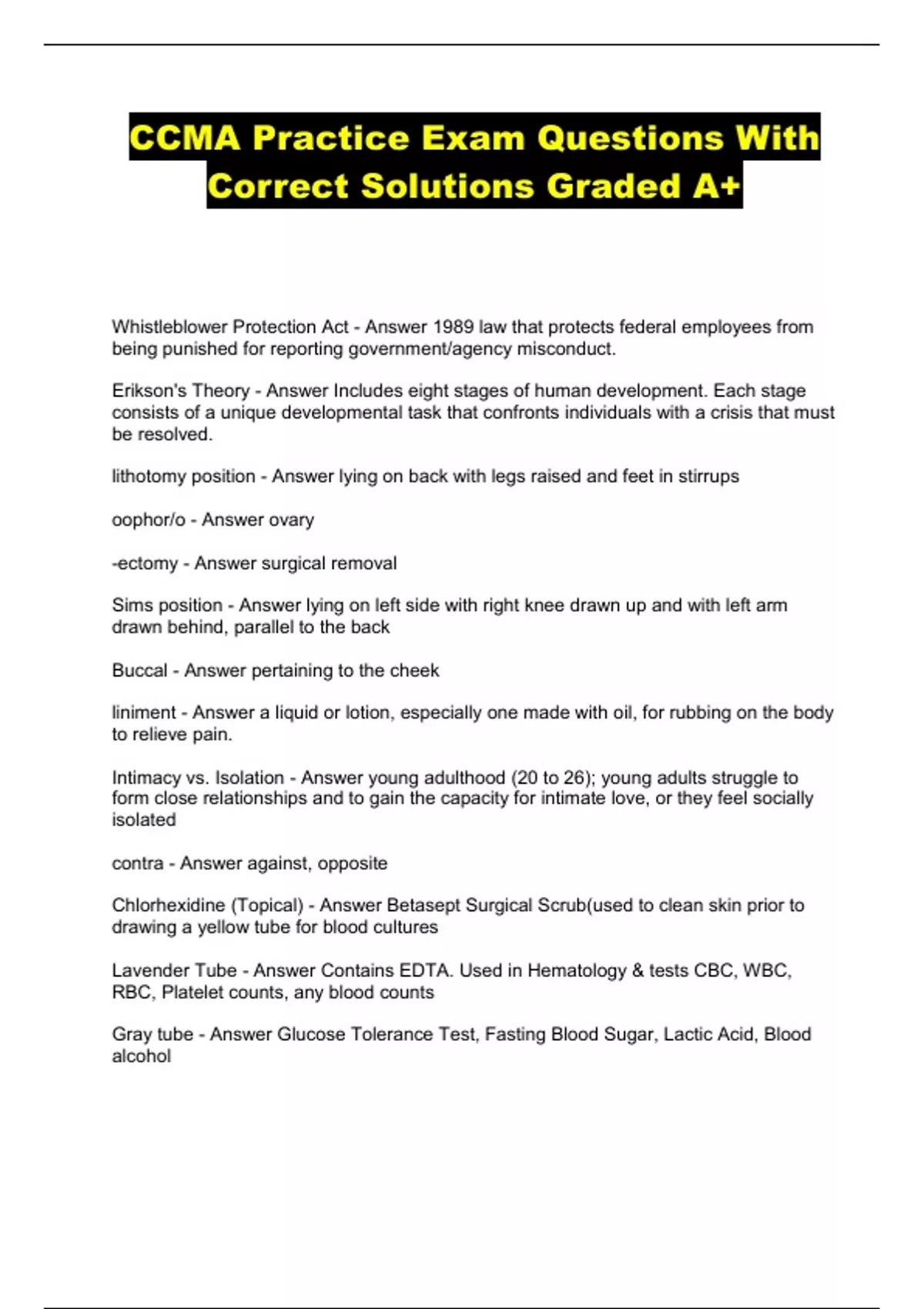 CCMA Practice Exam Questions With Correct Solutions Graded A+