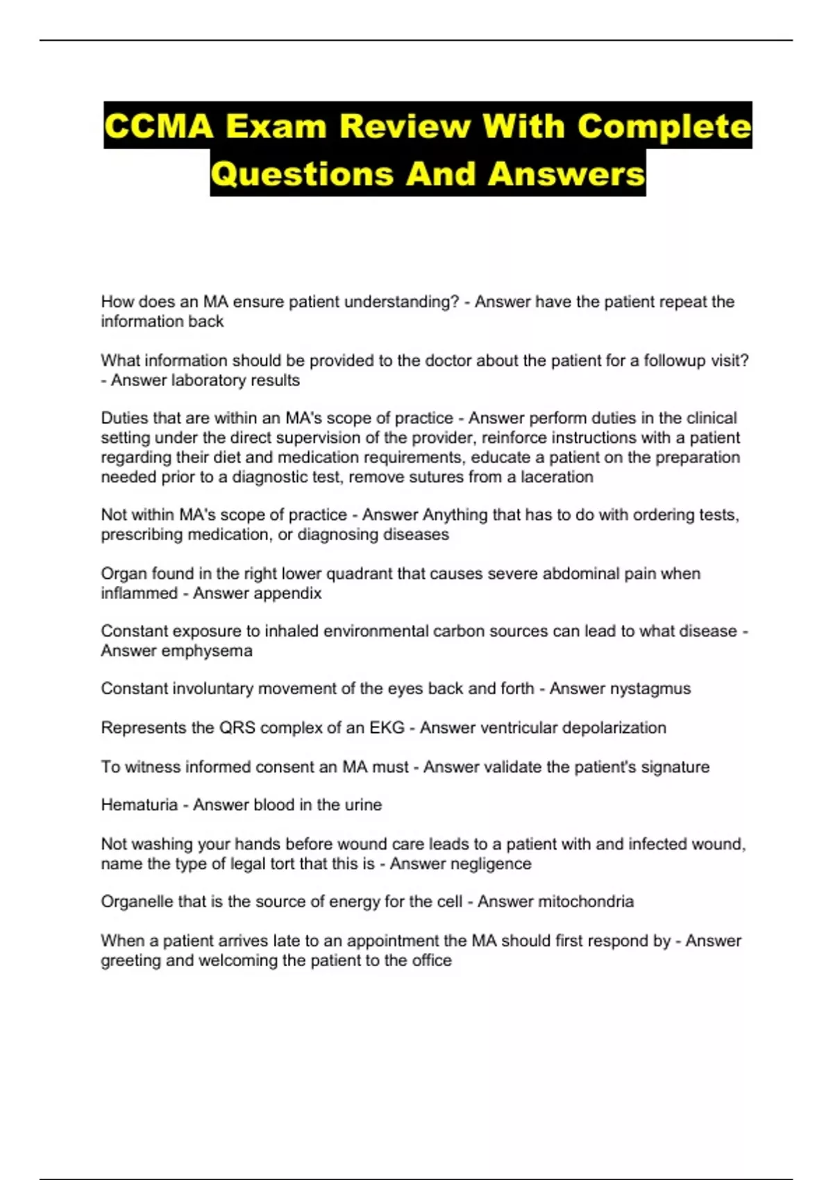 CCMA PACKAGED EXAMS WITH QUESTIONS AND CORRECT ANSWERS GRADED A+