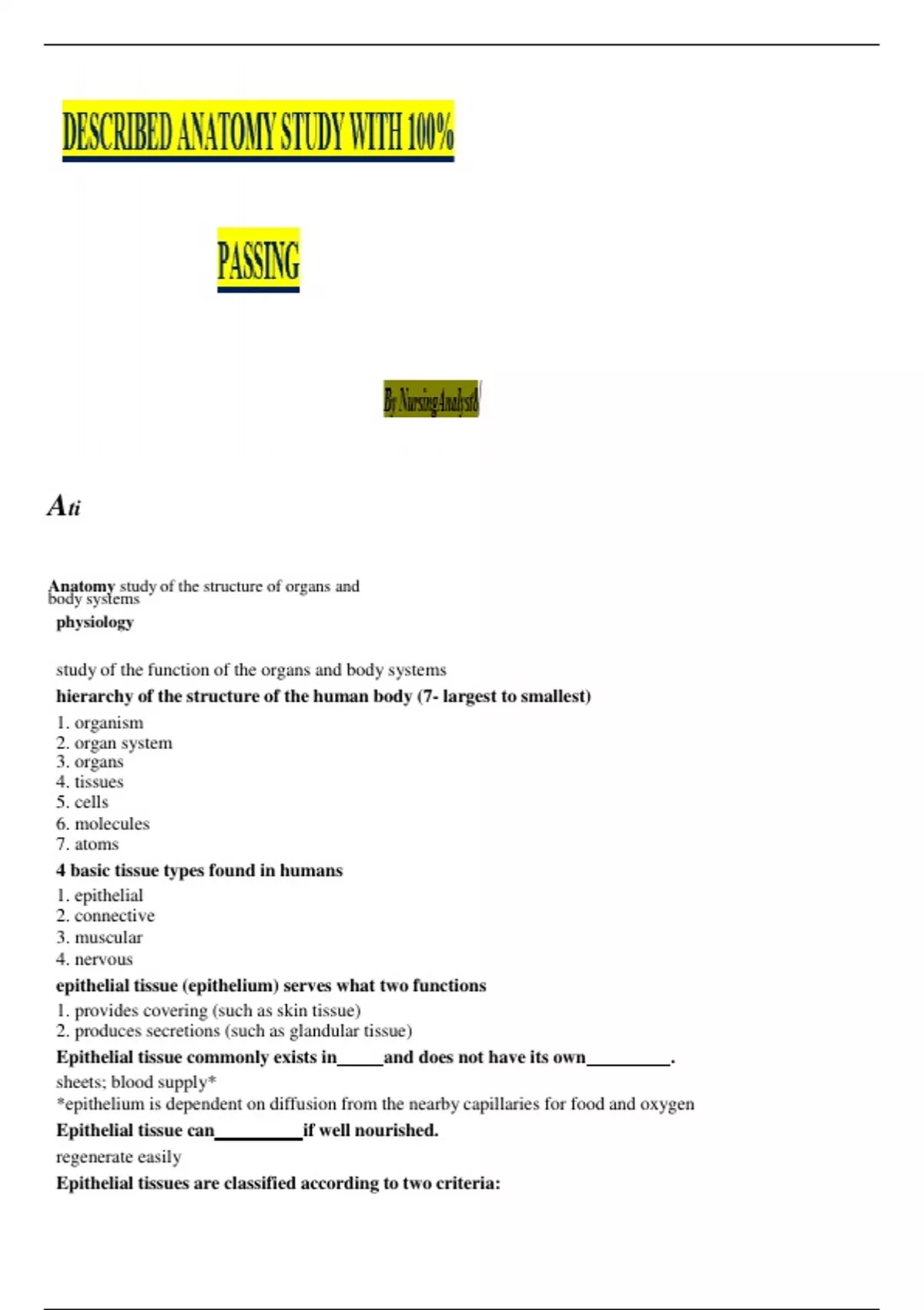 ATI ANATOMY STUDY 2023/2024 WITH GUARANTEED EXCELLENCE
