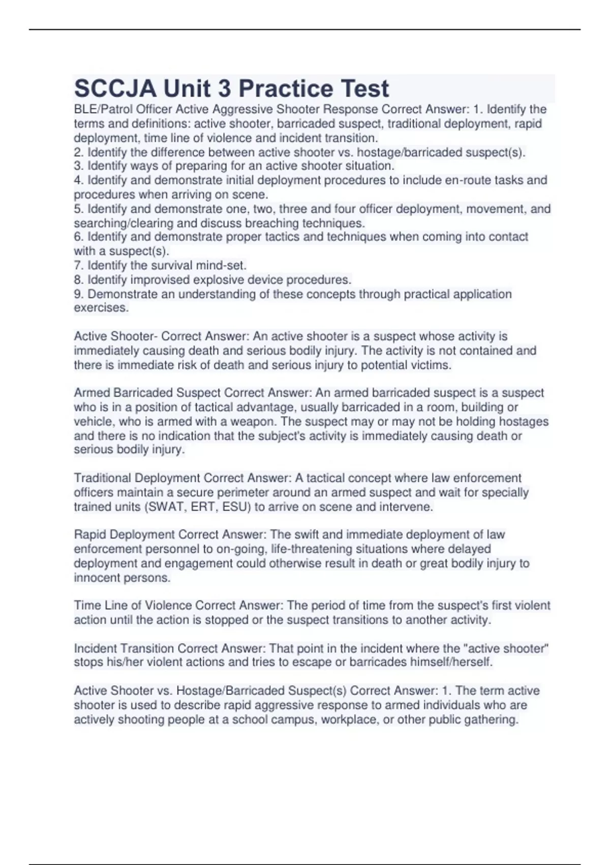 SCCJA Unit 3 Practice Test Verified Questions And Answers Graded A+